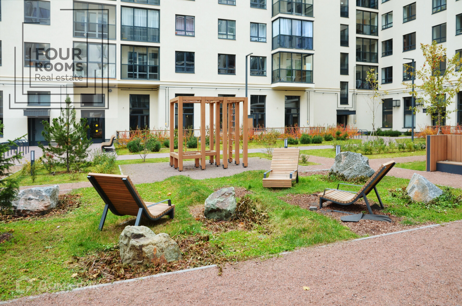 Здесь воплощена КОНЦЕПЦИЯ "РАВНОВЕСИЯ", учитывающая интересы всех жителей комплекса. Нет случайных мест, все сценарии продуманы! Идет чередование зон для отдыха и занятий спортом, площадок для малышей и детей постарше, открытых и затененных общественных пространств. Активный рельеф разделяет функциональные зоны, но при этом сохраняет целостность и проницаемость среды. Разнообразие решений и приемов, есть террасы и горки, качели и фонтаны, перголы и классические беседки, при этом все объединено по стилистическому исполнению и применяемым материалам.