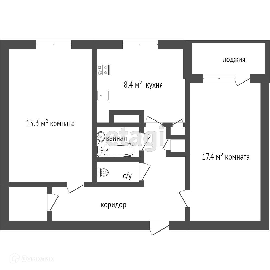 Жилая площадь 32.4 м2