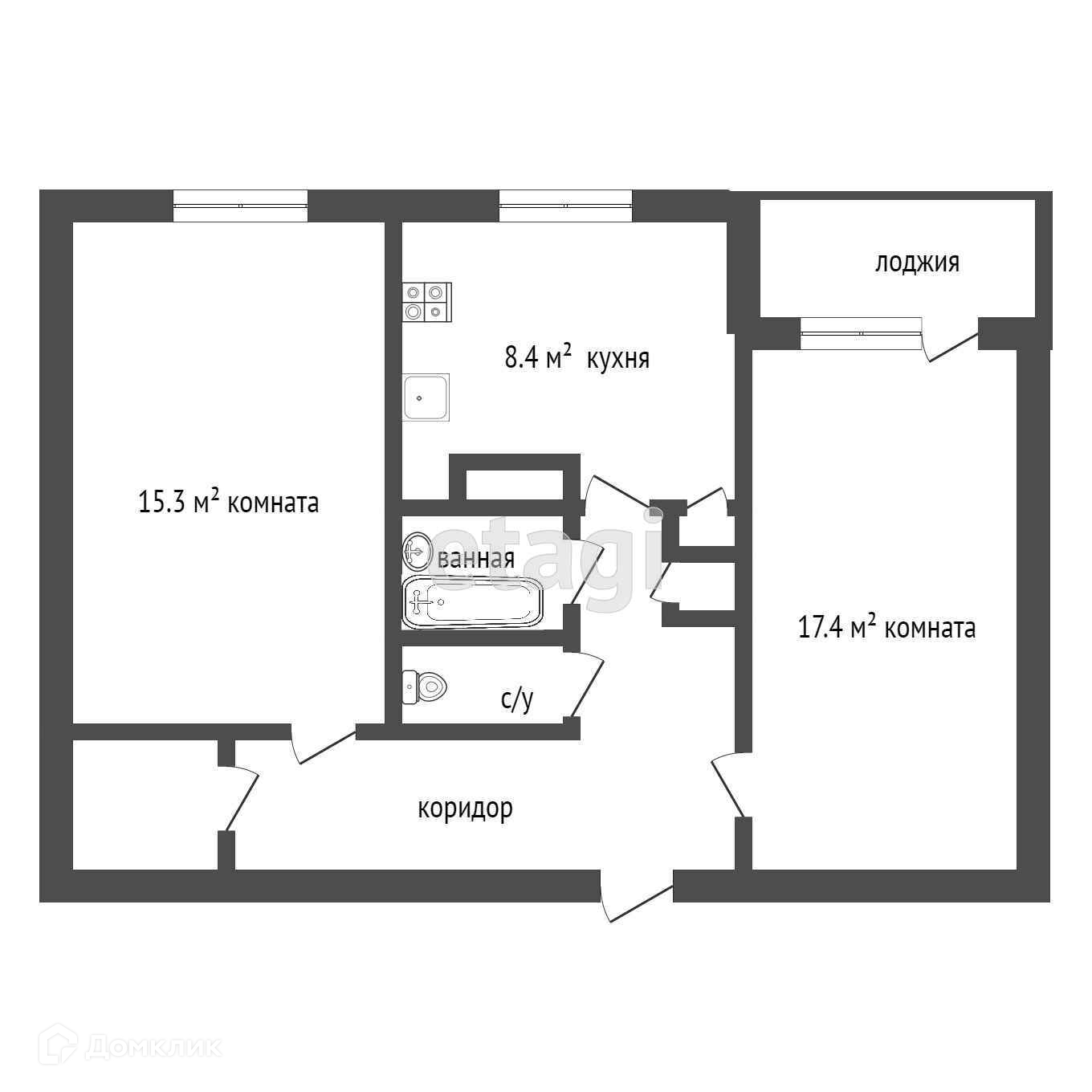 Общая площадь 57.6 м2