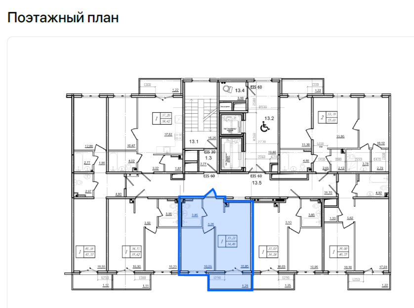 Общая площадь 34.46 м2