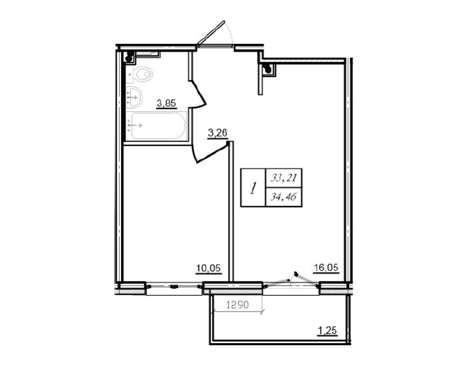 Балкон, лоджия 1 балкон
