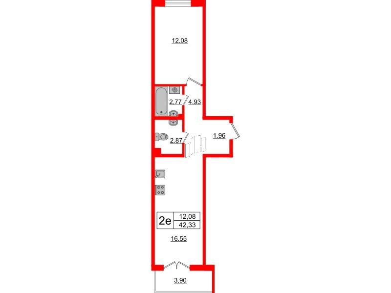 Общая площадь 42 м2
