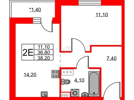 Общая площадь 38 м2