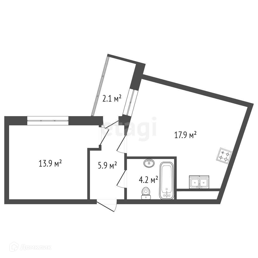 Жилая площадь 13.9 м2
