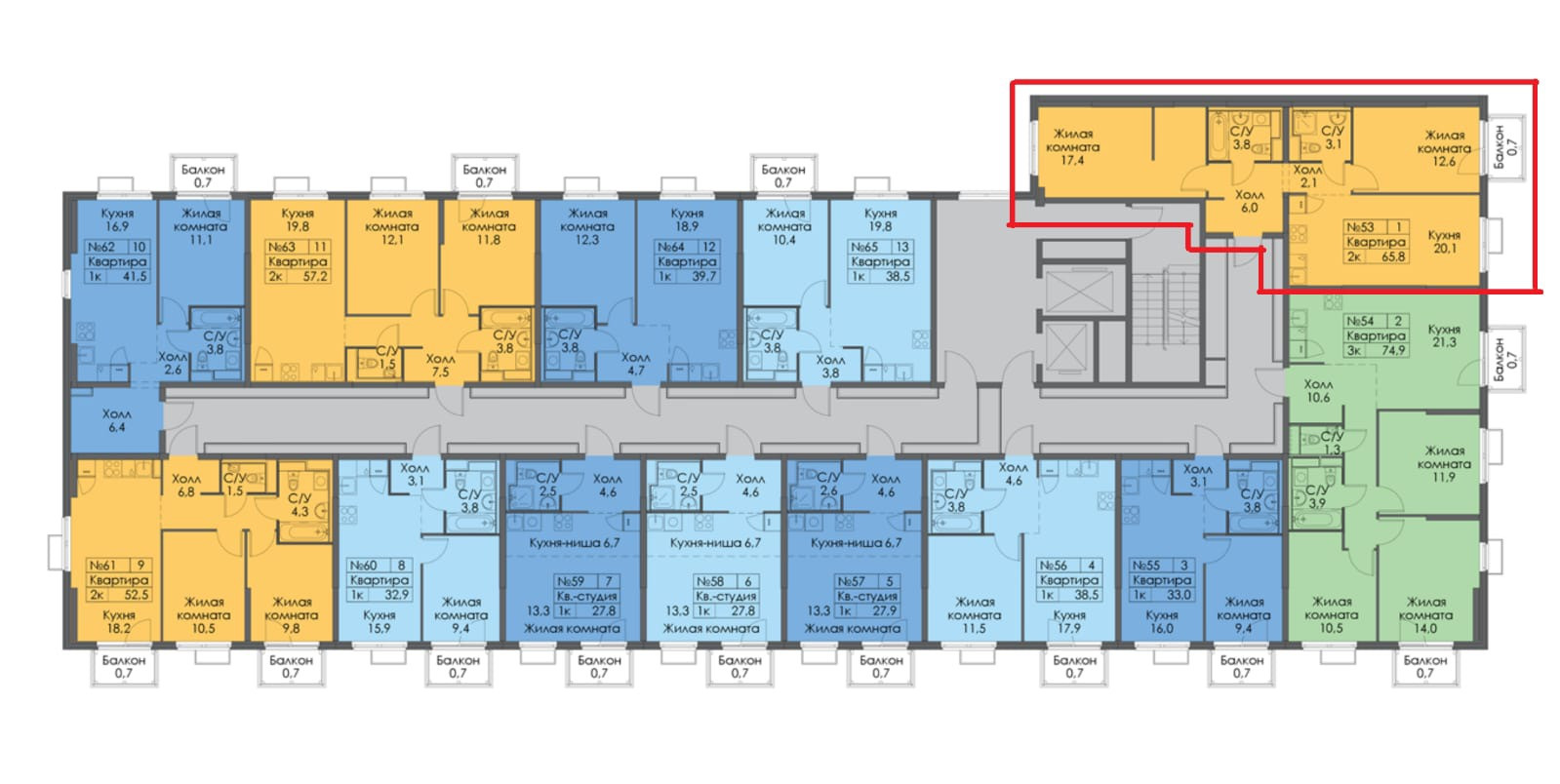 Общая площадь 66 м2