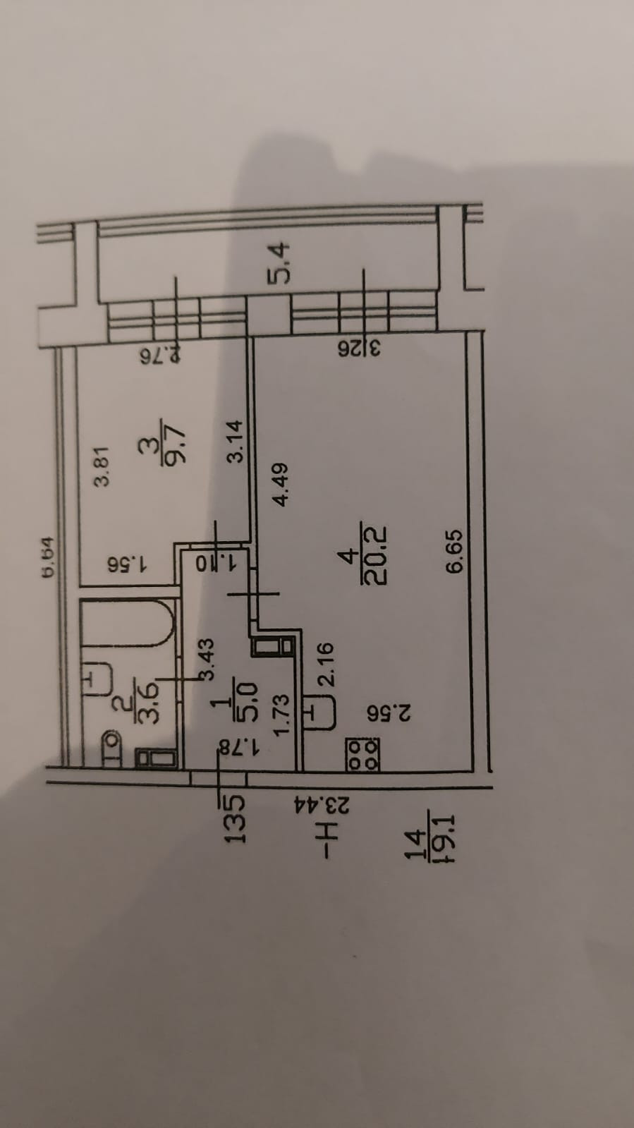 Жилая площадь 9.7 м2