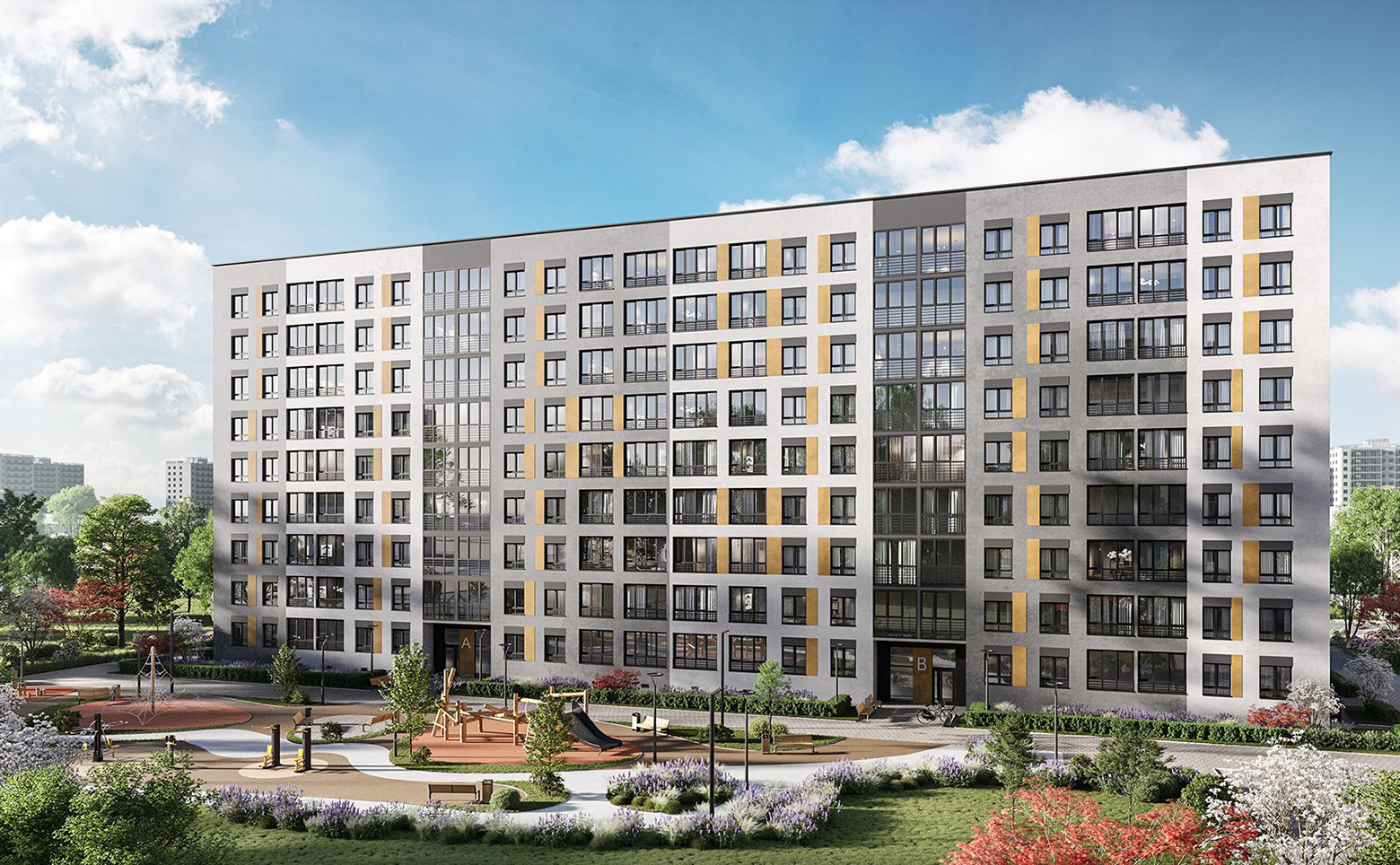 В проекте предложено множество планировочных решений — от студий до 2х-комнатных квартир евро-формата.