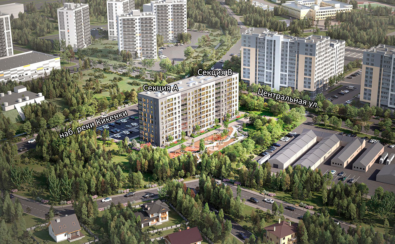 В пешей доступности расположена ледовая арена, детские и взрослые поликлиники, детский сад, школа, лесопарковая зона. До выезда на КАД дорога на автомобилю займет 5 минут.