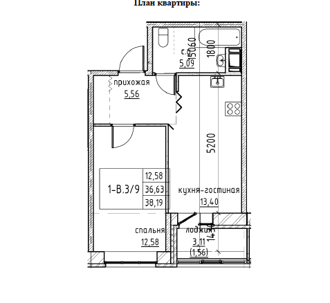 Балкон, лоджия 1 балкон