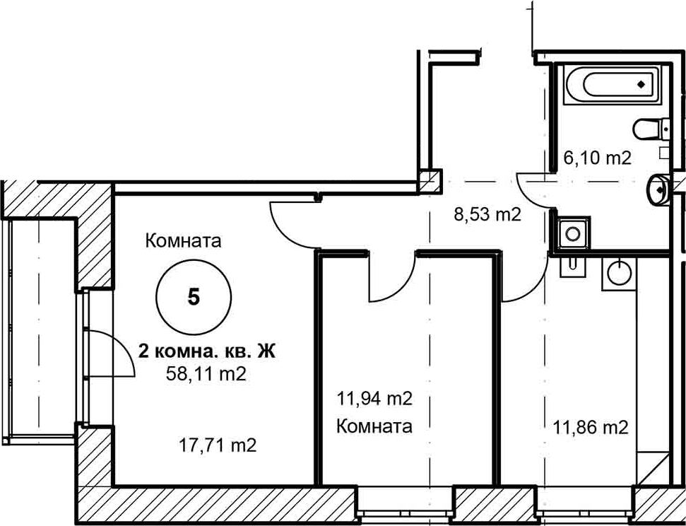 Общая площадь 58 м2