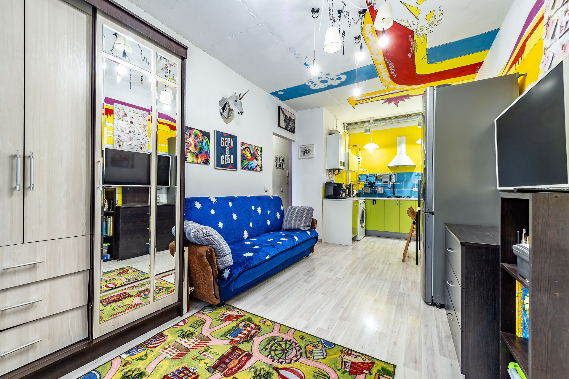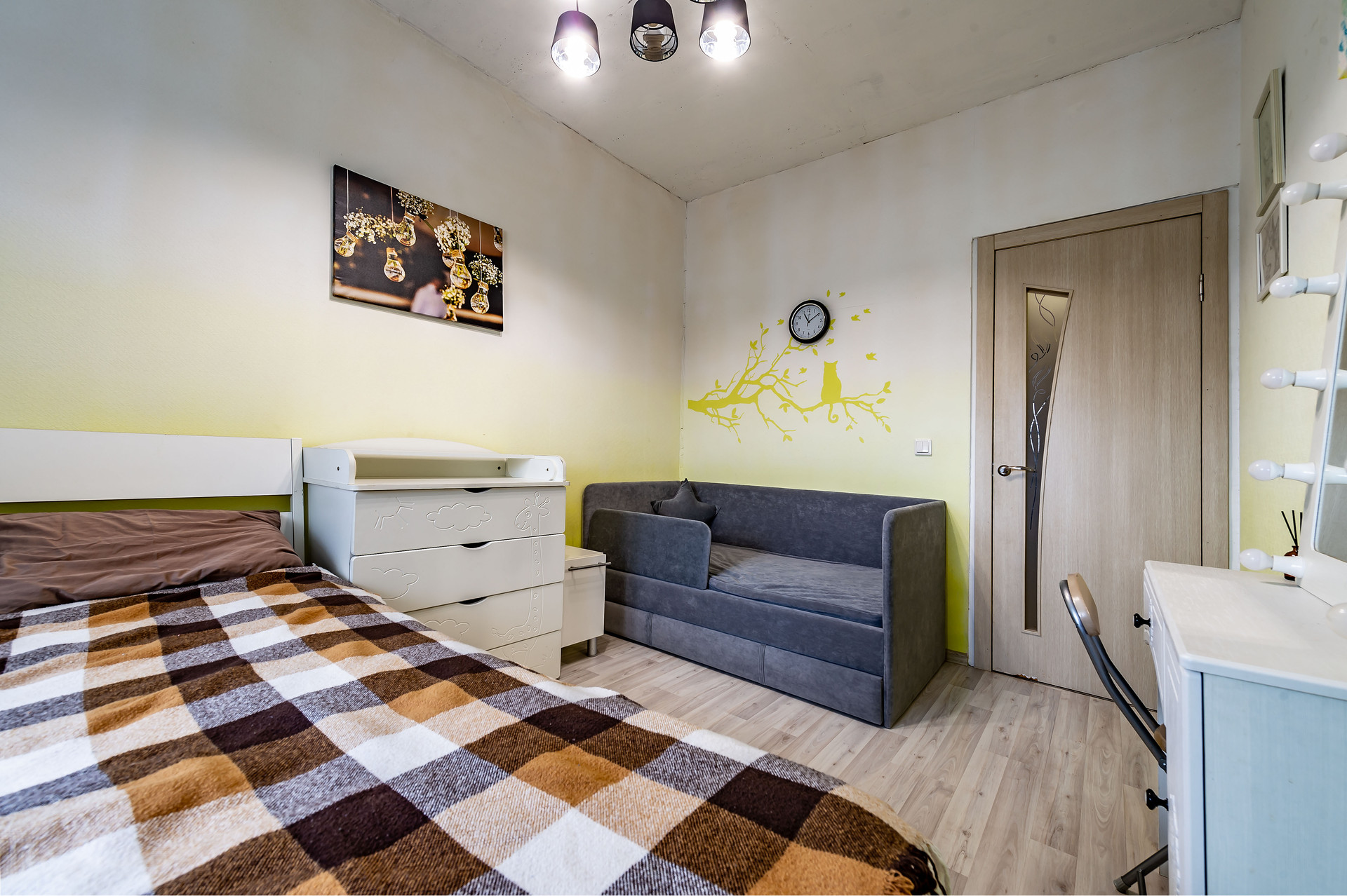 Квартира находится в тихом и благоустроенном районе с развитой инфрастуктурой, дворы закрыты, свободны от автомобилей и оборудованы детскими игровыми зонами. Дом окружен прогулочными аллеями с зелеными зонами и велосипедными дорожками, а в транспортной доступности находятся Финский залив, достопримечательности Стрельны, Петергофа и Ораниенбаума. Квартал окружен лесопарками, реками и озерами. До КАД 3 минуты транспортом, метро Ветеранов в 15 минутах езды.