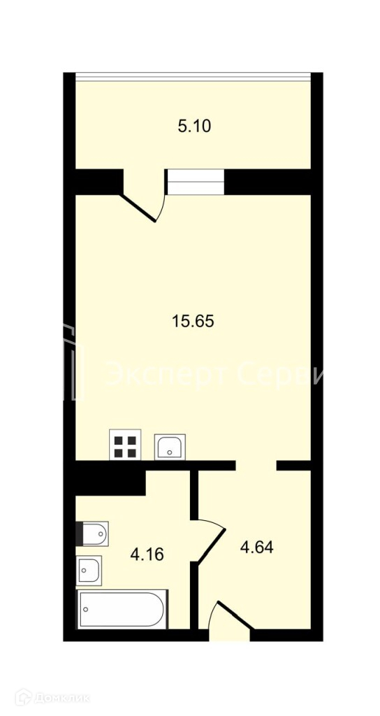 О квартире: Студия с удачной планировкой. Большая гостиная 15,65 м2,