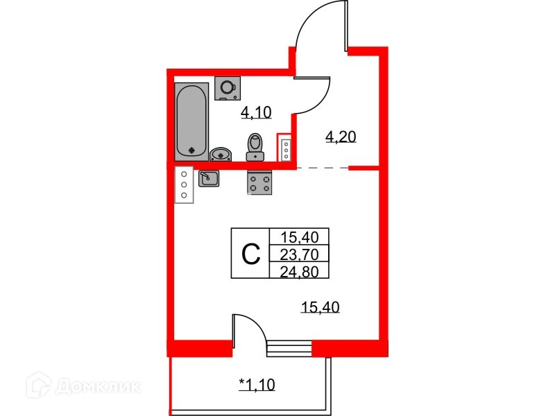 Общая площадь 24.8 м2