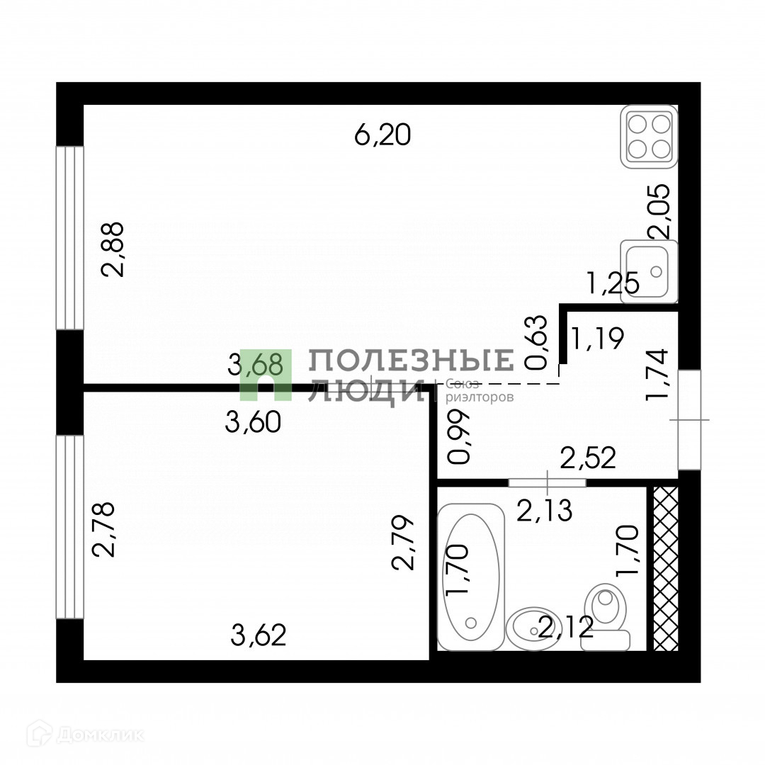Общая площадь 33.9 м2
