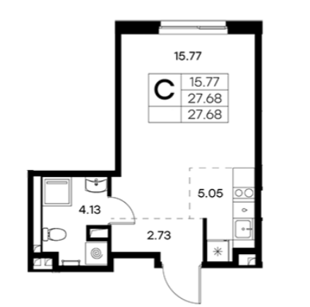 Общая площадь 27.68 м2