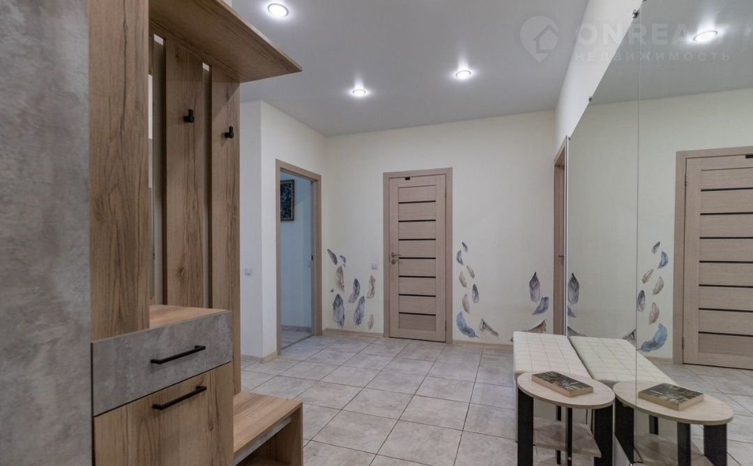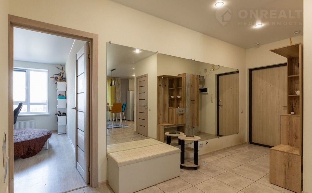 -Прихожая 11,47 кв,м с большим зеркалом на стене, которое визуально еще больше расширяет пространство.