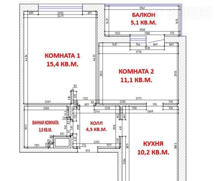 15.4 кв.м. комната 1.