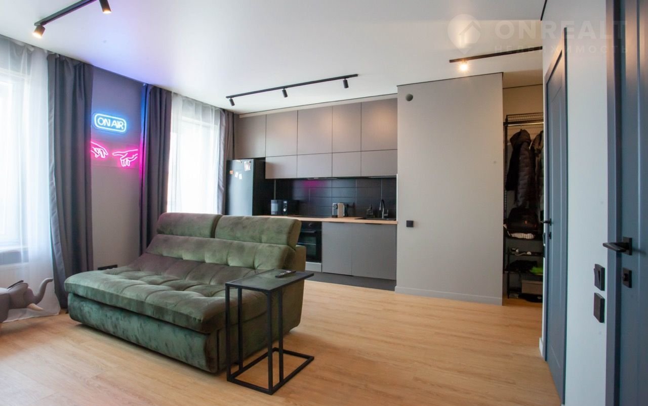 В квартире выполнен дизайнерский ремонт (и это видно по фото). Основная мебель и техника (все новое) остаются в подарок.