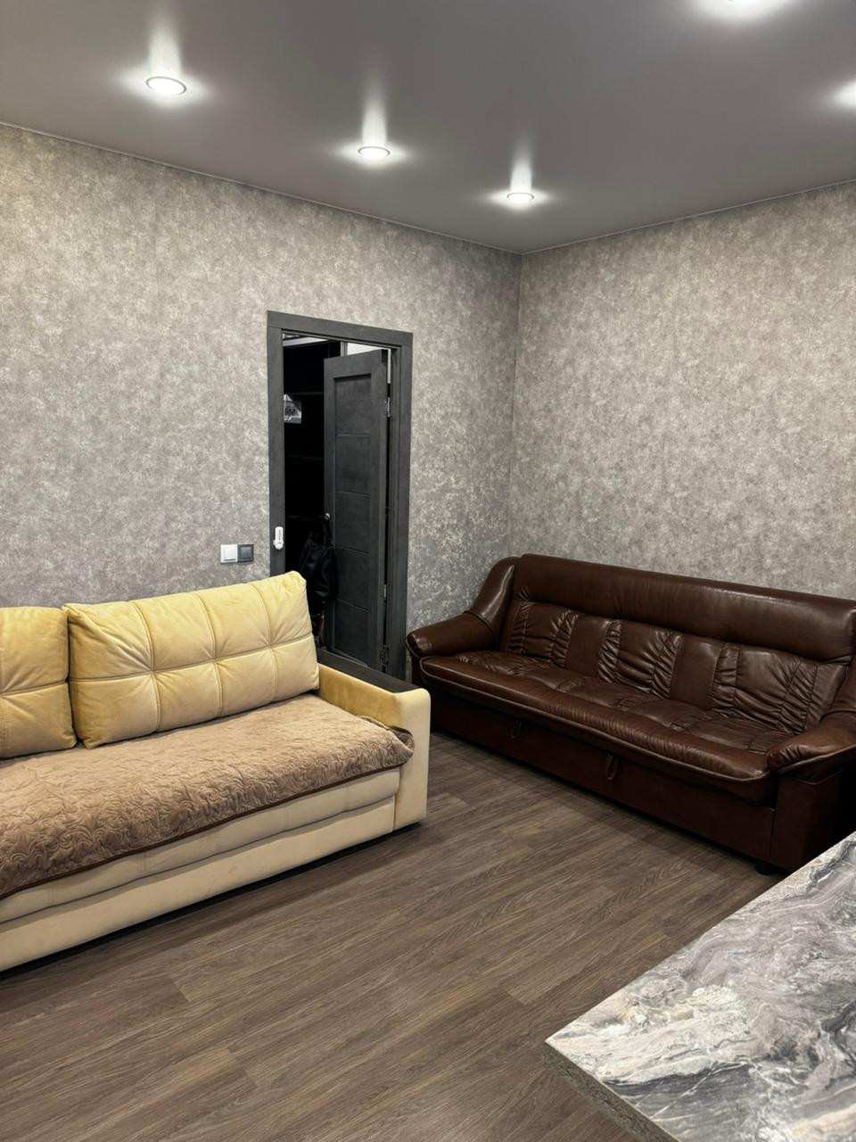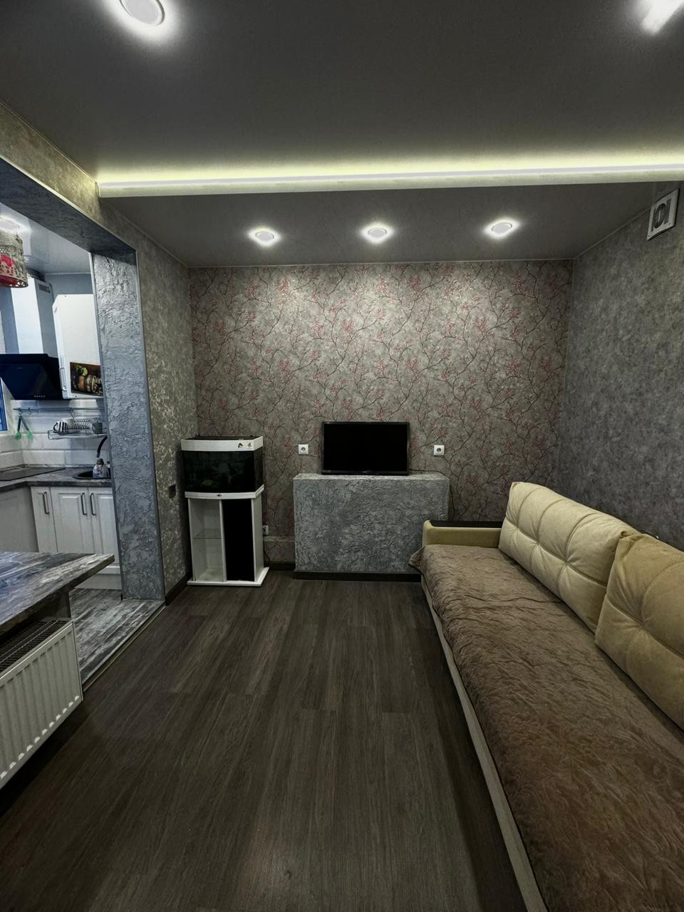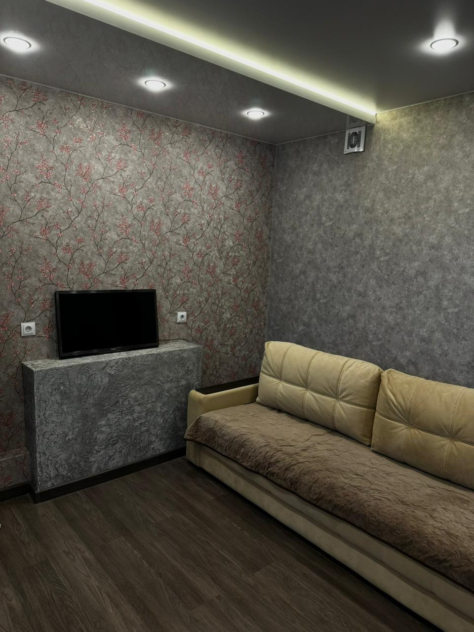 В квартире есть вся необходимая мебель и техника для комфортного проживания. Из техники: плазменный телевизор, холодильник, электрическая варочная панель с вытяжкой, стиральная машина, СВЧ печь.