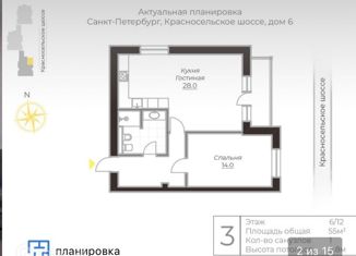 Сдам в аренду двухкомнатную квартиру, 55 м2, Красносельское шоссе, 6