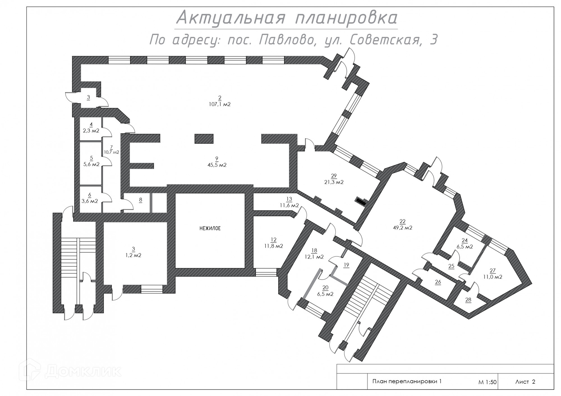 Коммерческое помещение общей площадью 324.9 м² расположено на первом этаже 5ти этажного жилого здания в п. Павлово. Удачная локация в самом центре поселения с развитой инфраструктурой и высоким пешеходным и автомобильным трафиком.