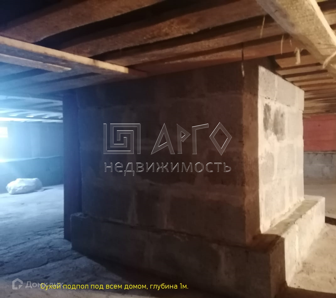 Фундамент: плита, под всем домом сухой подпол глубиной 1 м.