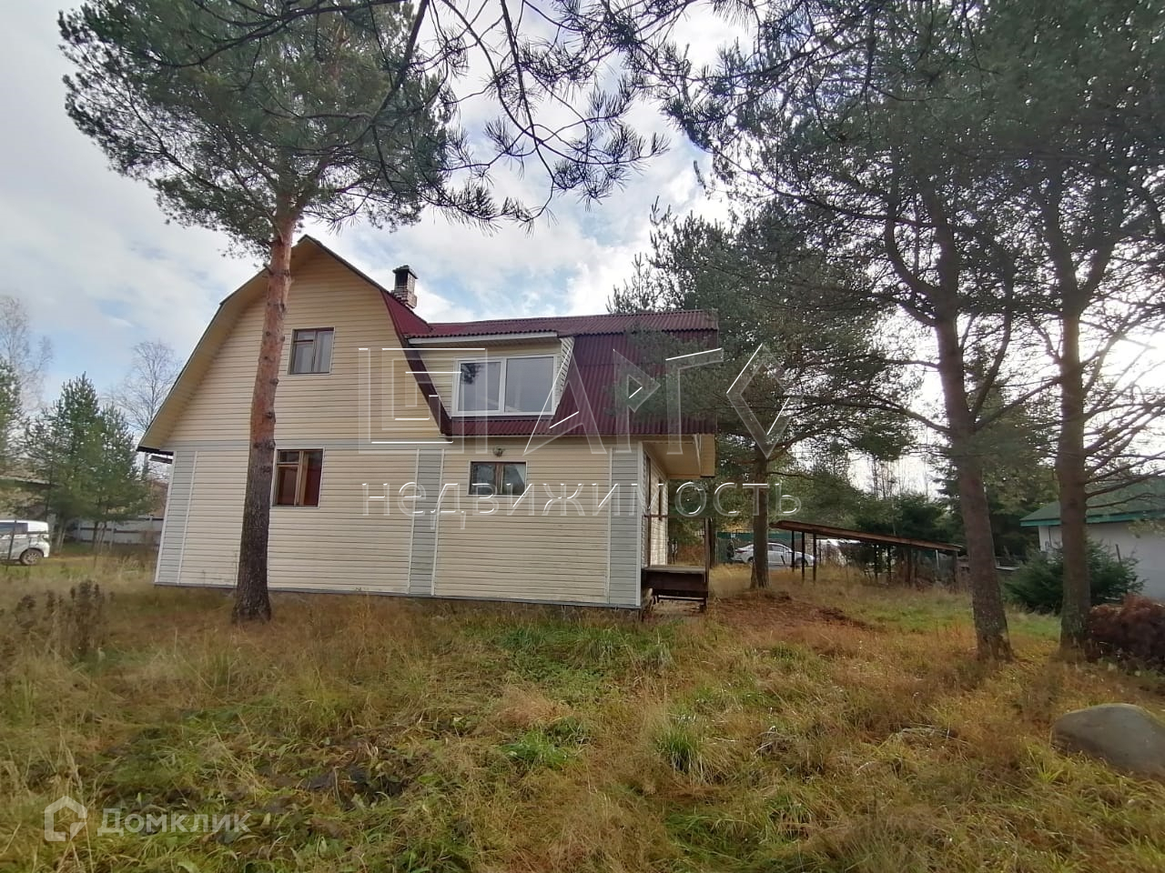 При въезде навес на две машины.