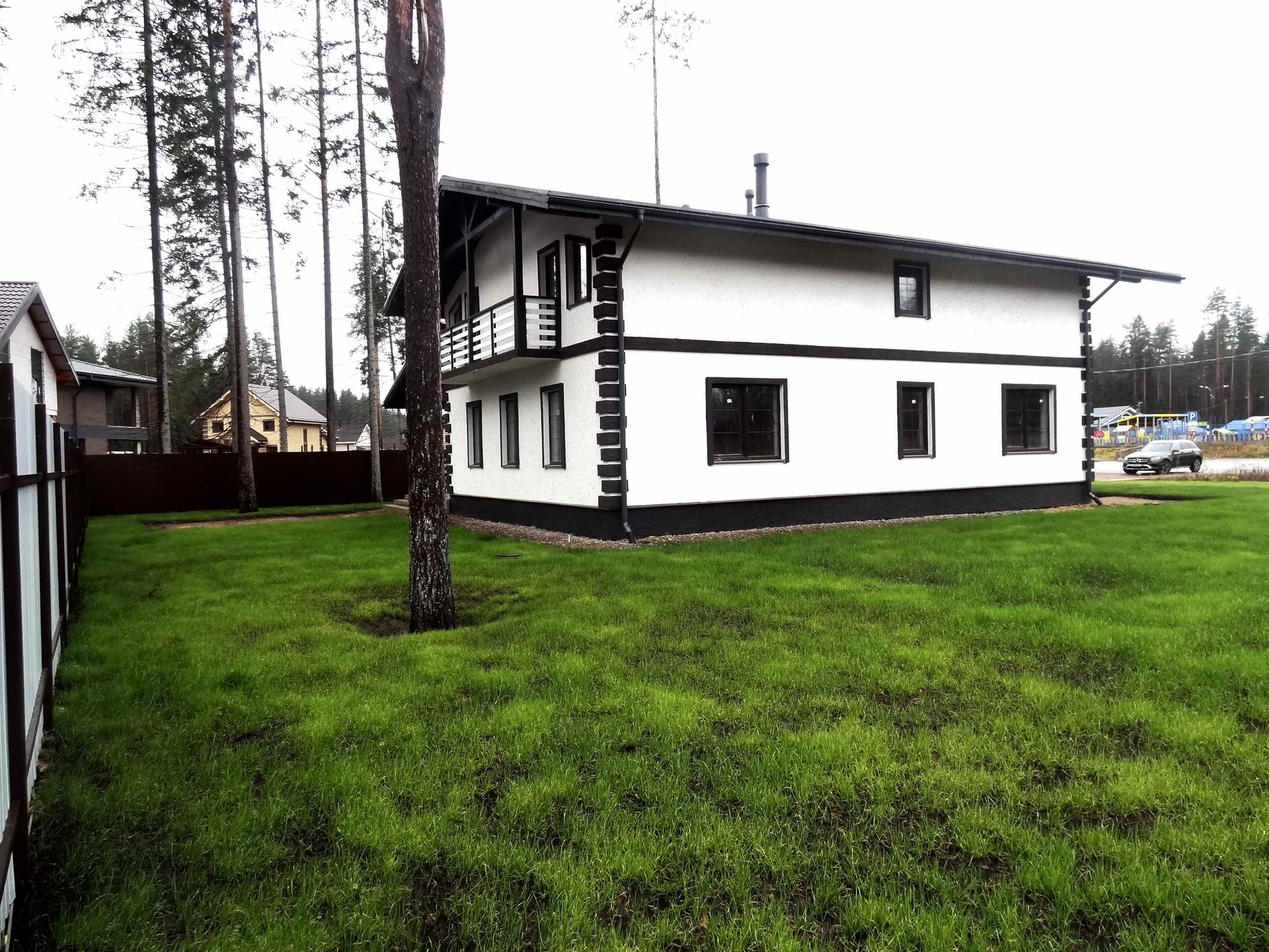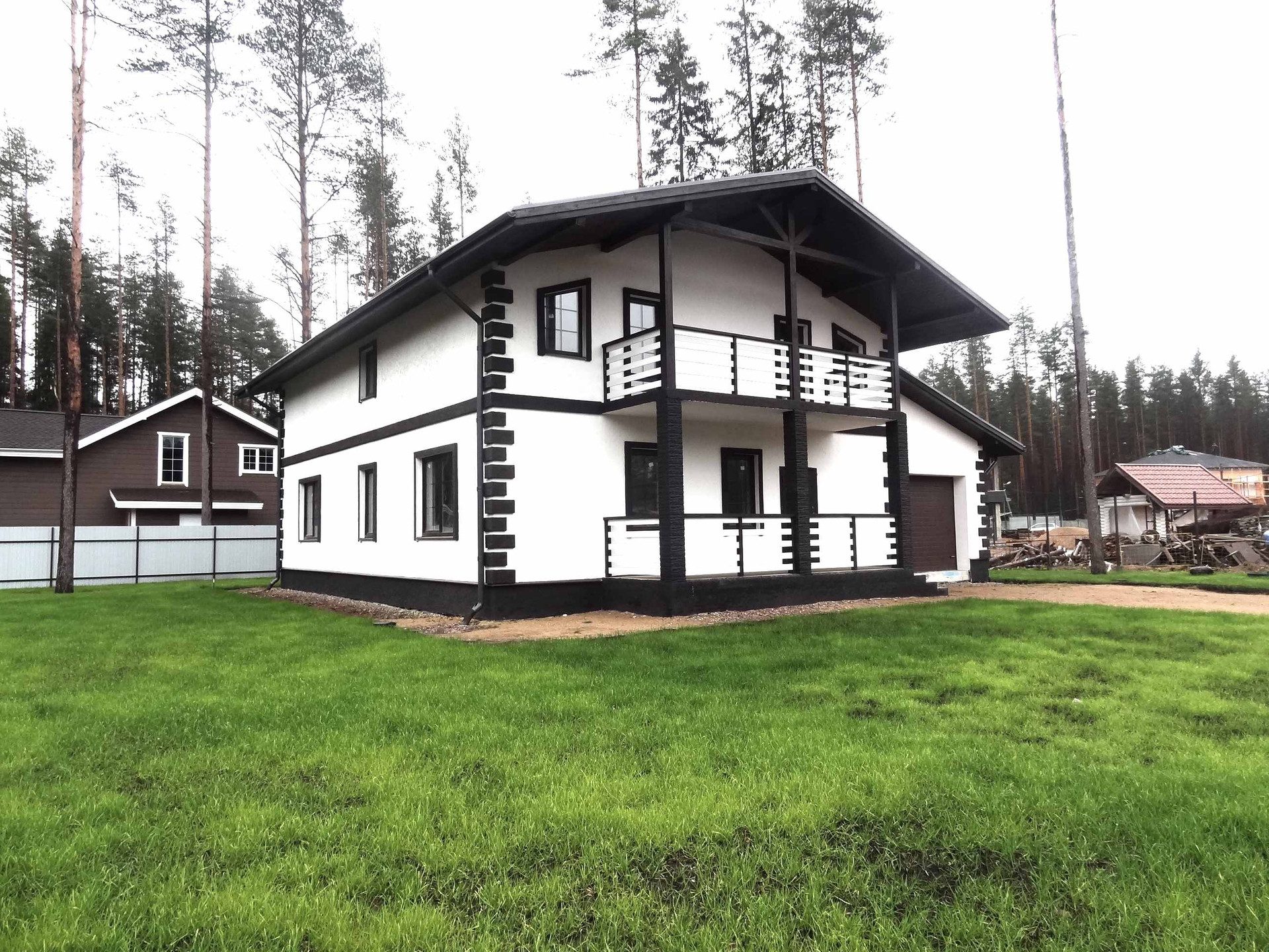 В 35 км от съезда с ЗСД, или в 60 км от КАД, в поселке с хорошо развитой инфраструктурой Рощино, на тихой тупиковой улице (ул. Детская, д. 11) с асфальтным поъездом, новый коттедж из газобетона общей площадью 315 кв.м, без внутренней отделки. Фундамент – плита, перекрытия – бетон, лестница на 2 этаж – бетонная, кровля – гибкая черепица. Наружная отделка – дорогая фасадная штукатурка (дополнительное утепление 50мм). К коттеджу подведены 15кВт электричества (установлен прибор учета) и центральный водопровод. Установлена станция биологической очистки (канализация разведена по дому), есть ТУ на газ. На первом этаже залиты теплые полы. Продуманная, логичная планирока: 1 этаж: гостиная-кухня 51кв.м с новой кирпичной, оштукатуренной русской печью, комната 15,3кв.м, санузел 11,5 кв.м, кооридор 23кв.м, две гардеробных, гараж 7х4м (с подъемными электрическими воротами), крытая терраса 26кв.м; 2-й этаж: четыре спальни (18+18+20+22), санузел 11 кв.м и два балкона. Участок 12 соток, ИЖС (милицейский адрес, прописка, никаких сборов нет), отсыпан, дренирован (система выведена в дренажный колодец, затем в канаву), посеян газон. И дом, и участок в собственности, возможна ипотека. Детсад и конечная остановка маршрутки – 150 метров, в пешей доступности вся инфраструктура Рощино – школа, детсады, поликлиника, банки, сетевые магазины, почта и прочее. Рощинское озеро и разлив реки Нижняя – 5 минут пешком, сосновый лес – 150 метров. Кадастровый номер участка: 47:01:0701004:832, карта и видео – по запросу, рядом населенные пункты: Зеленогорск, Решетниково, Ушково, Комарово, Ильичево, Симагино, Ленинское, Репино