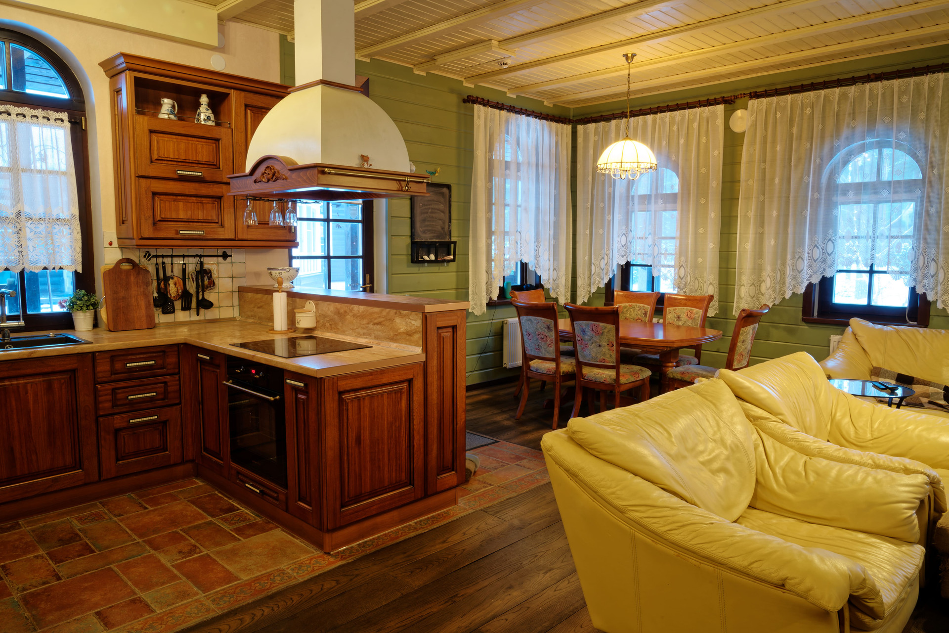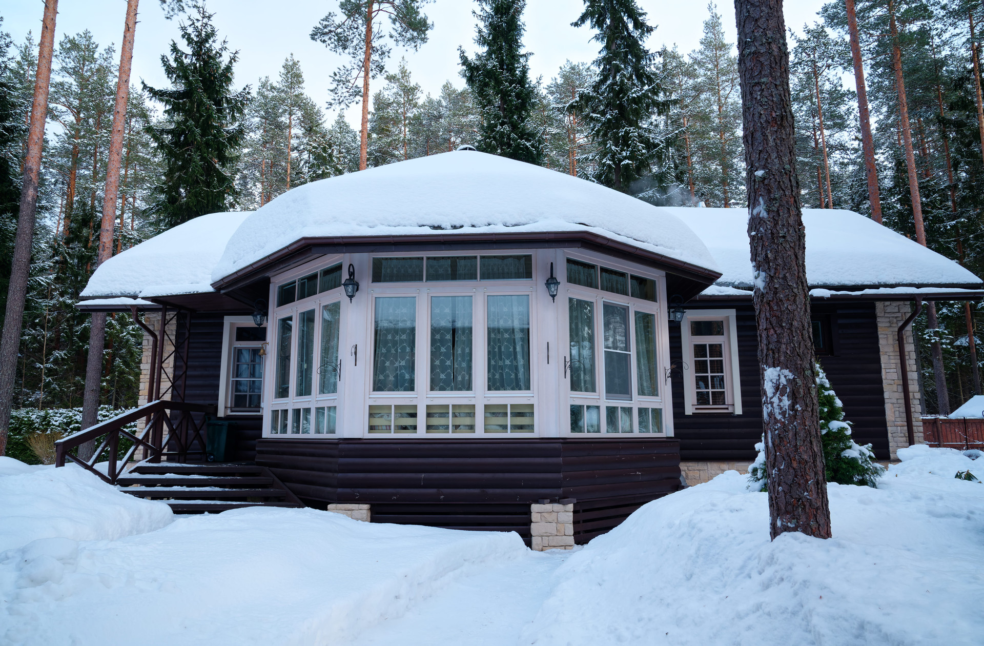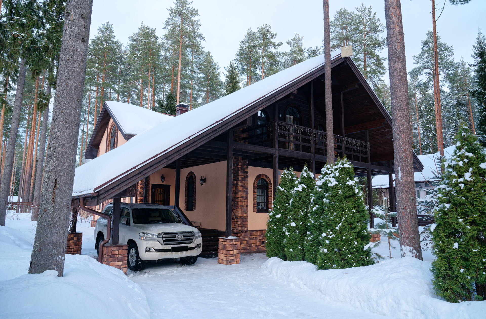 Для внешней отделки использованы природные материалы, что придает дому особый колорит и сочетается с природным ландшафтом.