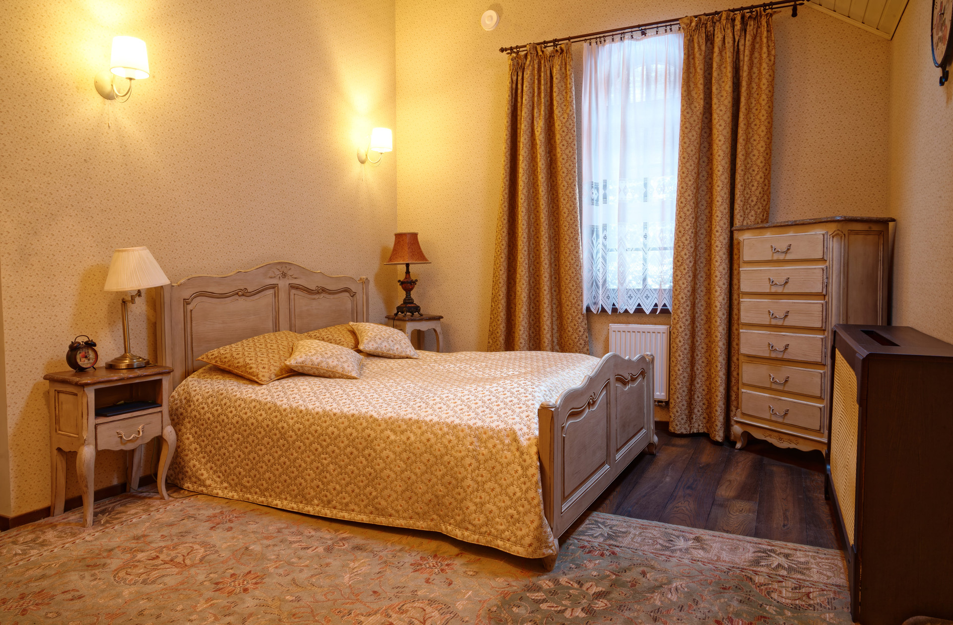 Теплый водяной пол по периметру первого этажа , на котором расположены: кухня - гостиная с камином и выходом на террасу, мастер - спальня, гардеробная, санузел, постирочная и котельная. На втором этаже: спальня, вторая гостиная, кабинет, просторный холл, санузел. Возможность организации 4 спальные комнаты.