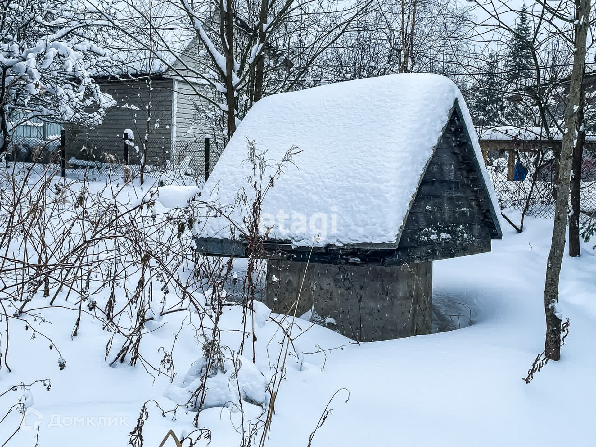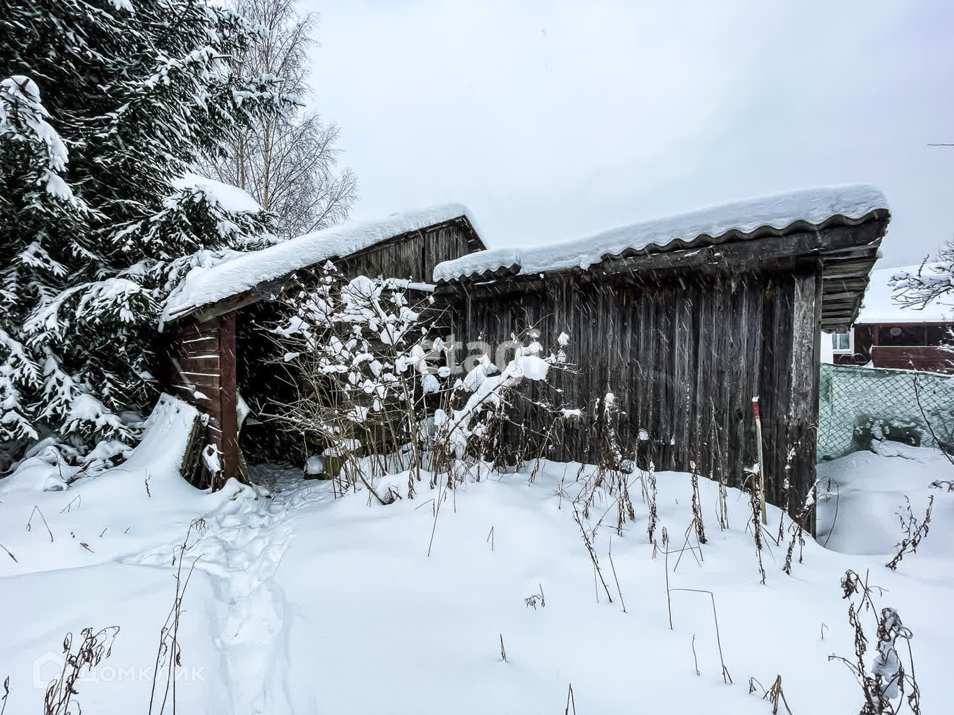 На участке есть сарай, готов сруб под баню.