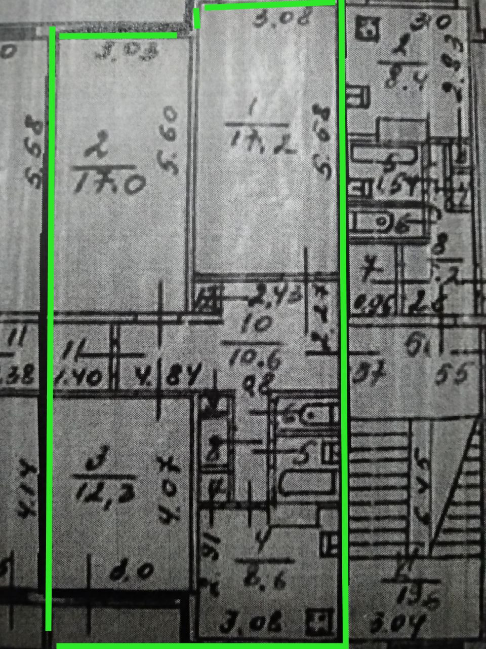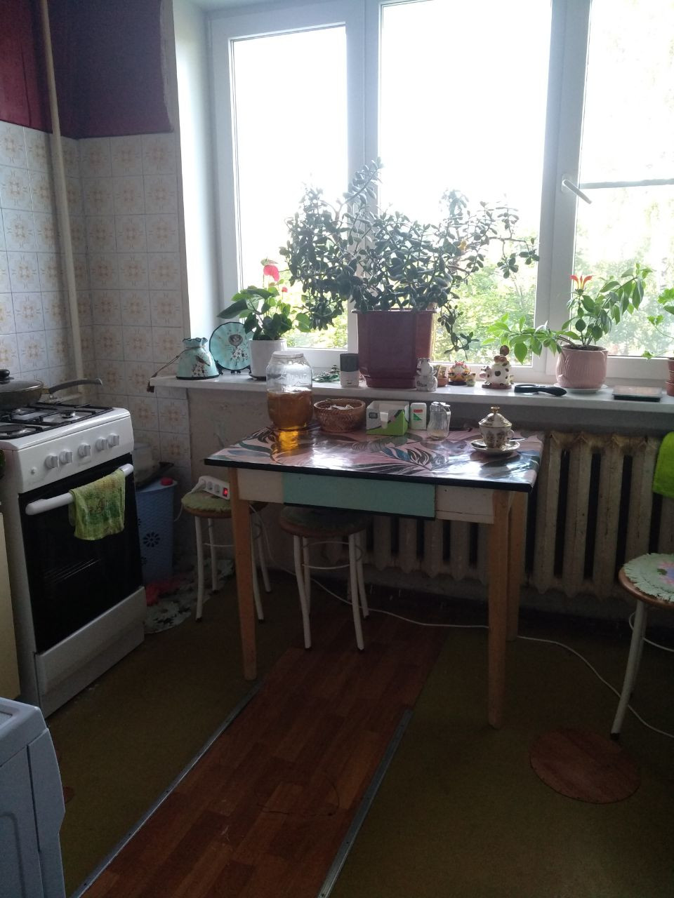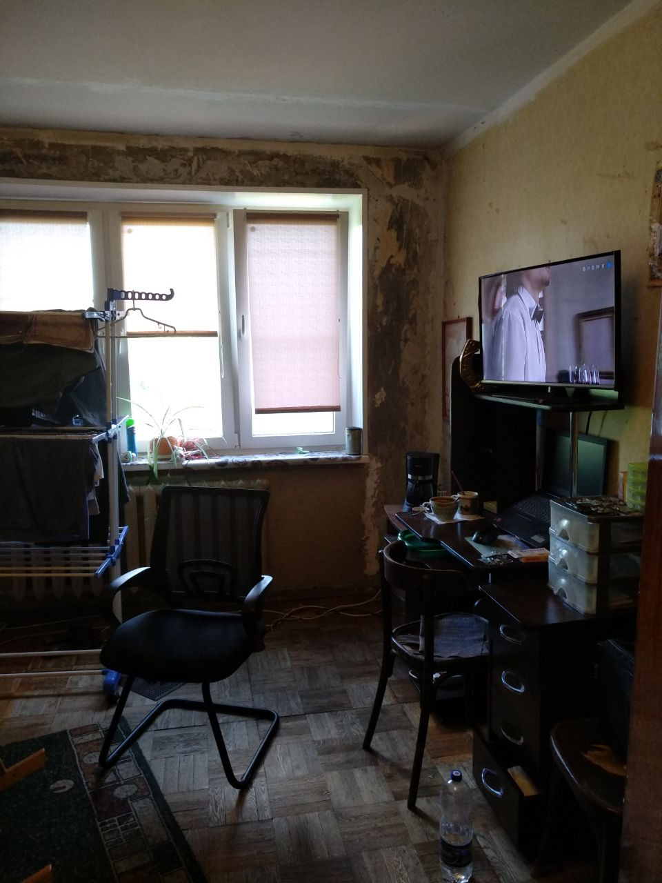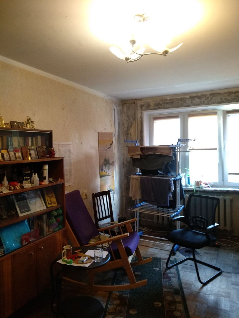Сделан ремонт 1 жилой комнаты. 2 комнаты, кухня и прихожая нуждаются в косметическом ремонте.