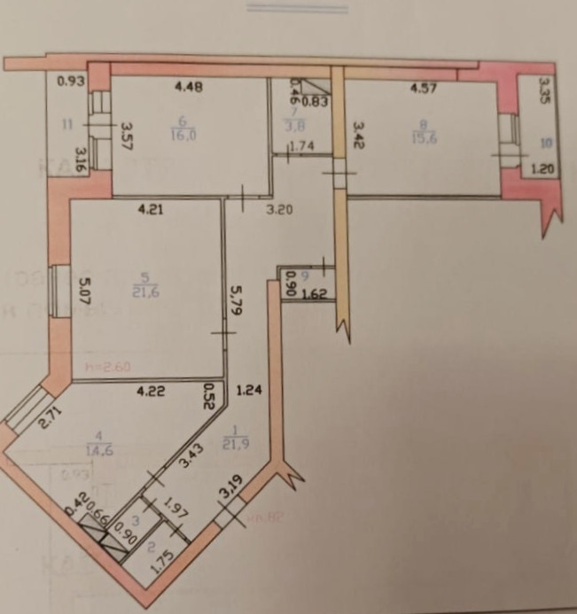 Жилая площадь 53.2 м2