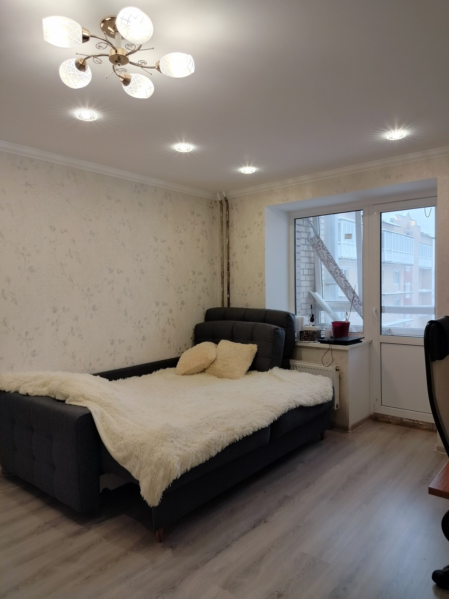 Квартира находится на 4-м этаже и имеет очень удобную планировку: все комнаты изолированы друг от друга, большая кухня-гостиная (необычной формы), огромный коридоры, раздельный санузел, две застеклённые лоджии. В части коридора, кухне и сан. узле установлена система тёплых полов. Окна квартиры выходят на две стороны: в уютный двор и тихую улицу. Под окнами всегда есть места для парковки!
