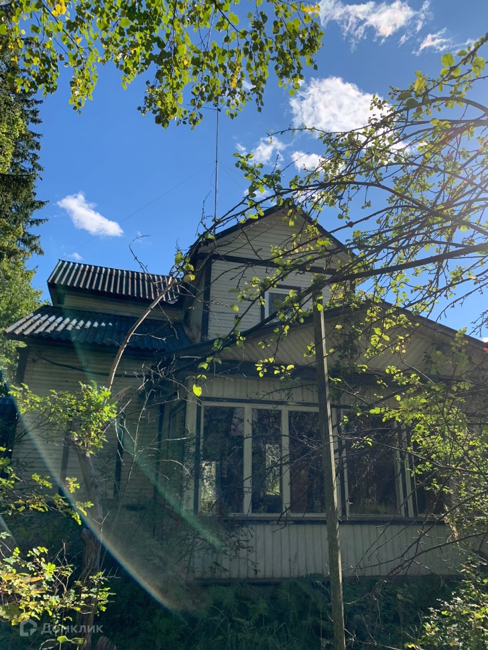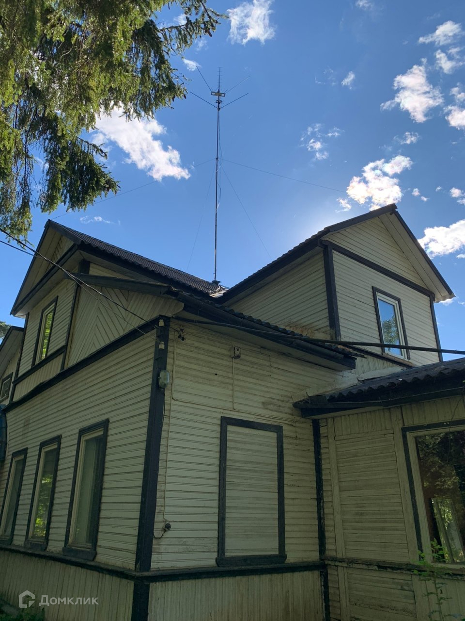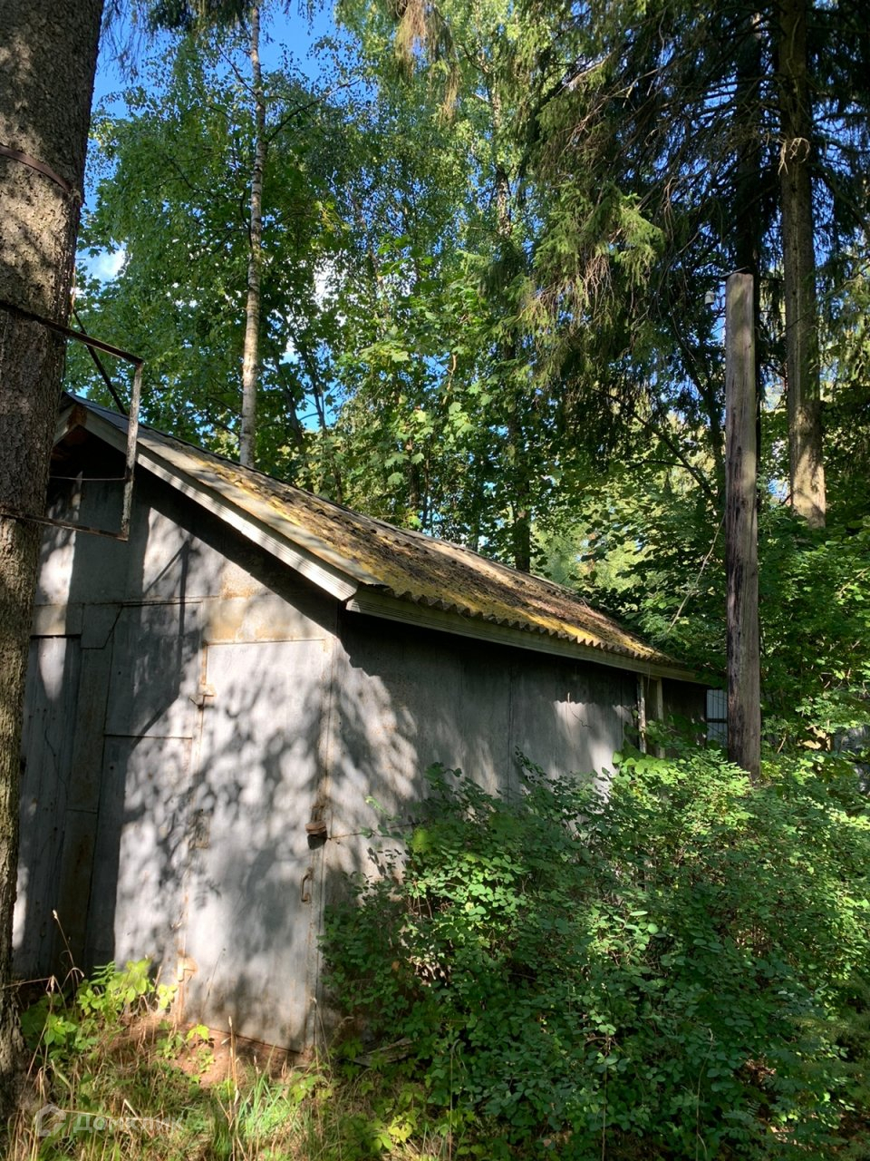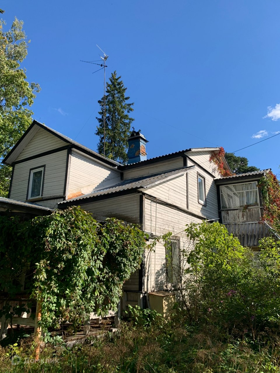 Фасадная часть дома спрятана в лесопарковой зоне из вековых сосен и множества разнообразных деревьев ,в том числе огромных туй !
