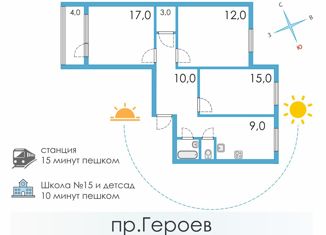 3-ком. квартира на продажу, 73.7 м2, проспект Героев, 8