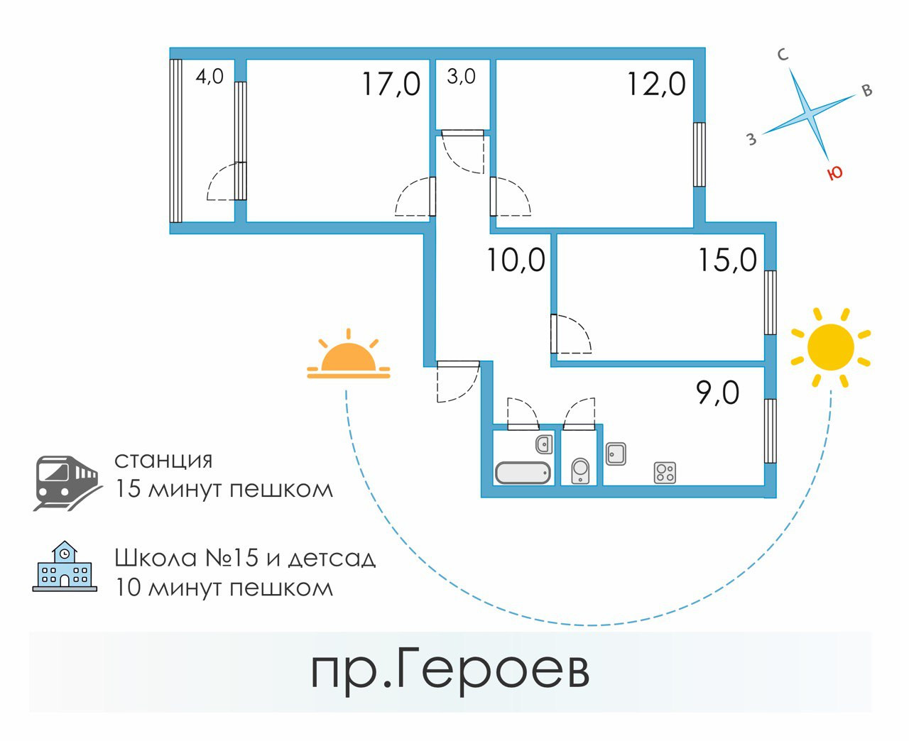 Окна на две стророны света( запад и восток).