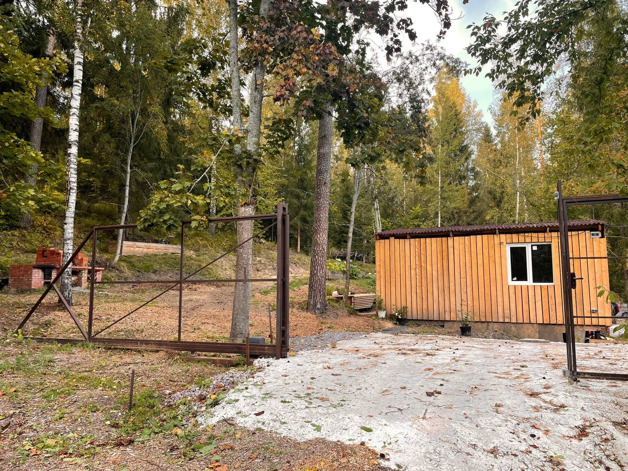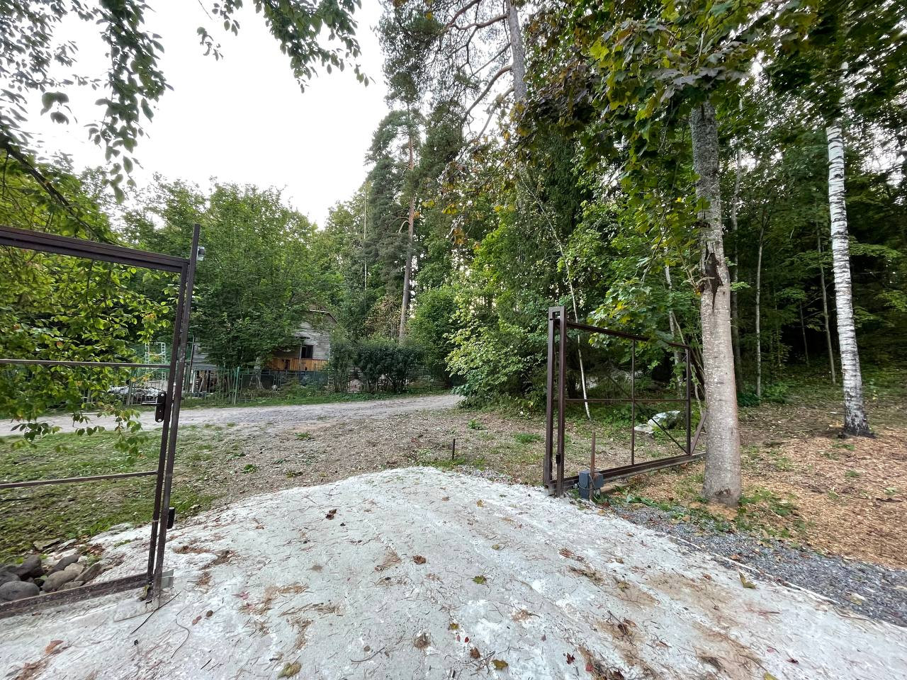 На участок заведено электричество 15 кВт, пробурена скважина 33 метра, по границе участка проходит газопровод с возможностью подключения. В месте въезда на участок залита бетонная площадка для автомобиля, установлены въездные откатанные ворота с автоматикой.