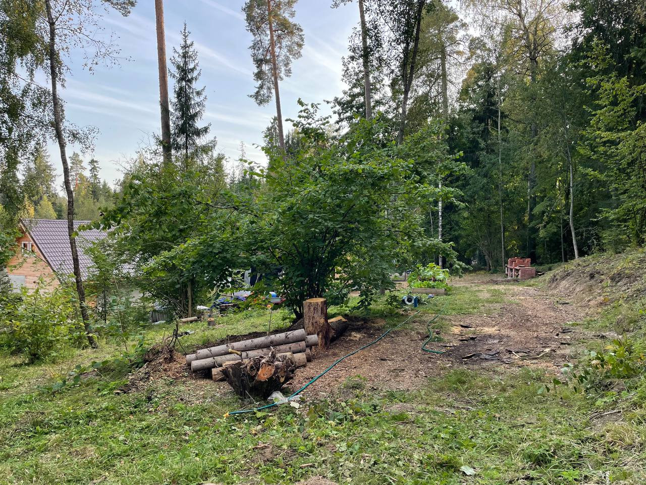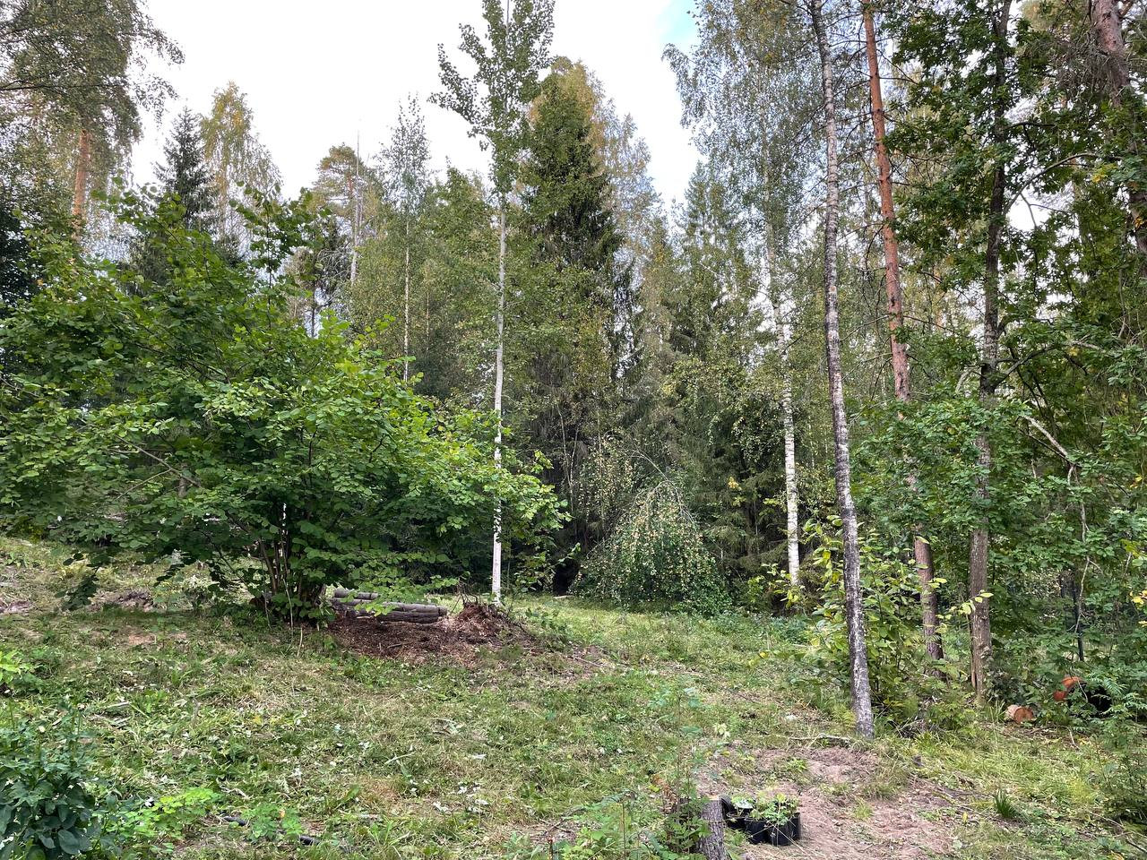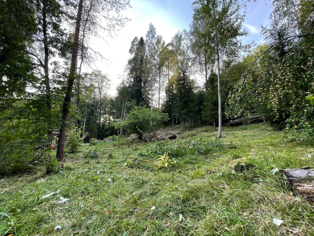 Участок состоит из двух частей, одна часть расположена на природном склоне с возможностью реализации интересных ландшафтных идей (частично проведена планировка участка), вторая часть участка расположена в нетронутом лесу с отсутствием уклона земли, на котором можно установить дом с пятном застройки 200 кв.метров.
