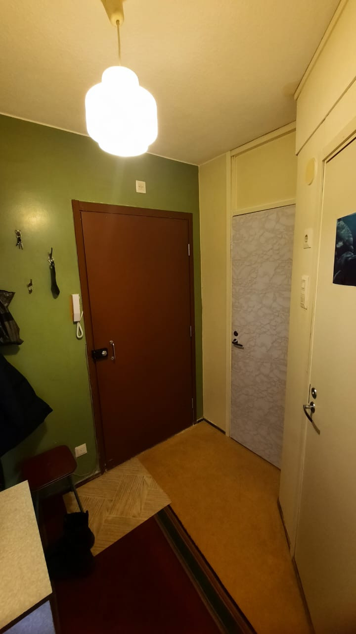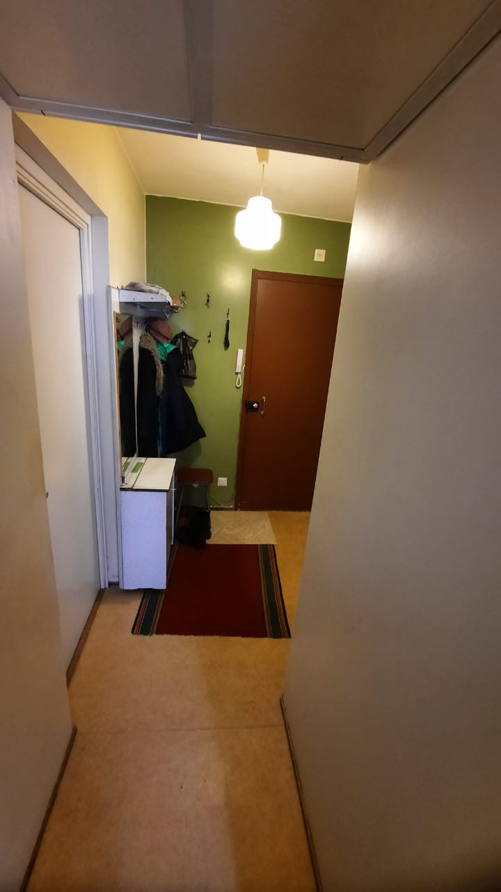 Светлая, просторная, уютная квартира в панельном финском доме 1987 года постройки. Большие комната и кухня, гардеробная, балкон. Комфортный 2-й этаж.