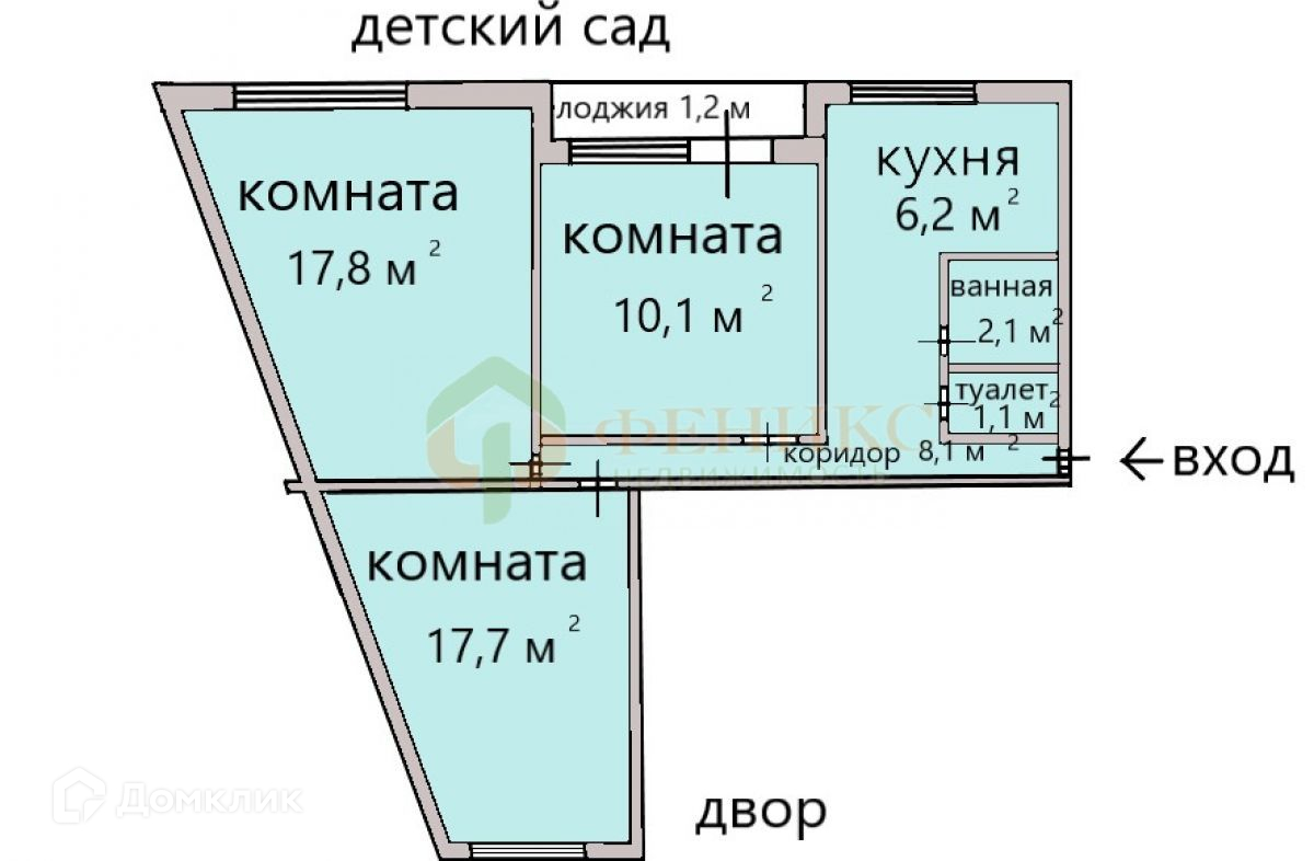 Комнаты – 17,7 кв.м., 17,8 кв.м., 10,1 кв.м.;