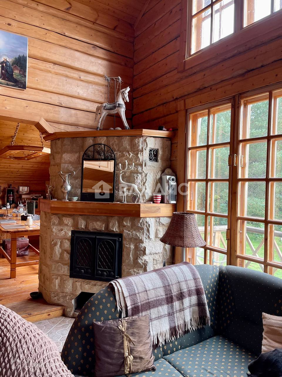 Дом 2-хэтажный, 6 комнат, две спальни, две ванные комнаты, два туалета, сауна, большой камин, высота потолков в гостиной, второй свет - 5,0 м, материал стен - полубрус - шлифованное вручную бревно, эксплуатируемый ж/б подвал, площадью 41,4 м2, отопление - скандинавскими электроконвекторами. Год постройки – 2000. Общая жилая площадь - 204,4 м2, гараж на 2 авто, площадью 57,8 м2.