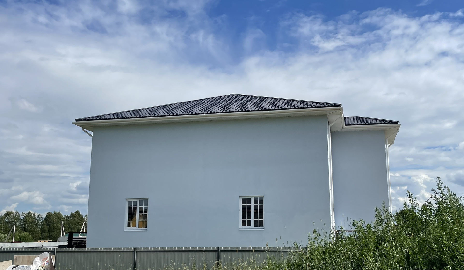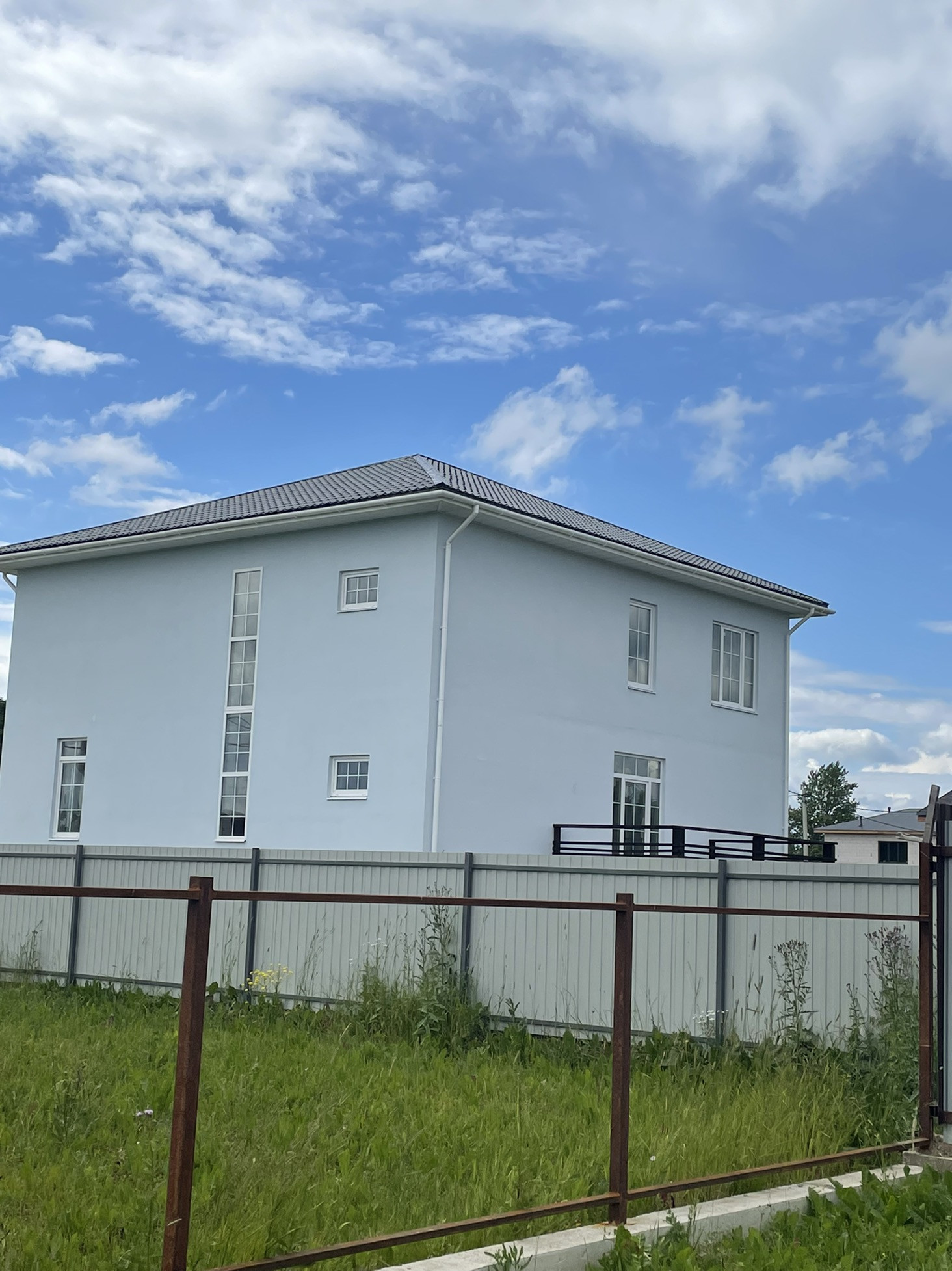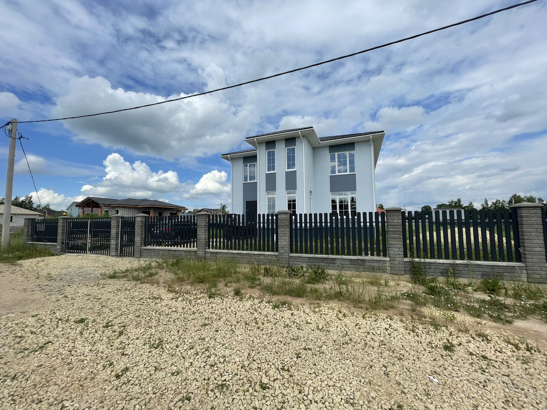 Продается жилой дом и земельный участок ИЖС. Площадь земельного участка 10 соток. Участок сухой и ровный. Огорожен забором: по фасаду ленточный фундамент и штакетник с бетонными столбами, по периметру - металлоконструкции. Ворота на дистанционном управлении. Дом площадью 385.7 кв.м., 2021 г.п., из газобетона. Фундамент - ФБС блоки, перекрытия ж/б, крыша скандинавская металлочерепица. 3 этажа, в т. ч подземный. Подвальный этаж: высота потолка 2.8 м, котельная, кладовая, подсобные помещения, идеально подойдет под домашний кинотеатр или спортивный зал; 1 этаж: высота потолка 3 м – прихожая, кухня-гостиная, комната, СУС, открытая терраса; 2 этаж: 3 комнаты, холл, СУС. Дом требует утепления, разводки коммуникаций внутри дома и внутренней отделки. Электричество 15 кВт, 3 фазы. Вода: скважина с питьевой водой 24 м с насосом, заведена в дом. Канализация септик, 3 колодца по 2 кольца, заведена в дом. Газ будет подведен в следующем году. До СПб 40 км. В пешеходной доступности (10 мин.) – ж/д станция, магазин Пятерочка, Магнит, аптека, множество небольших магазинов. Участок и дом в собственности. Межевание сделано. Один собственник. Прямая продажа.