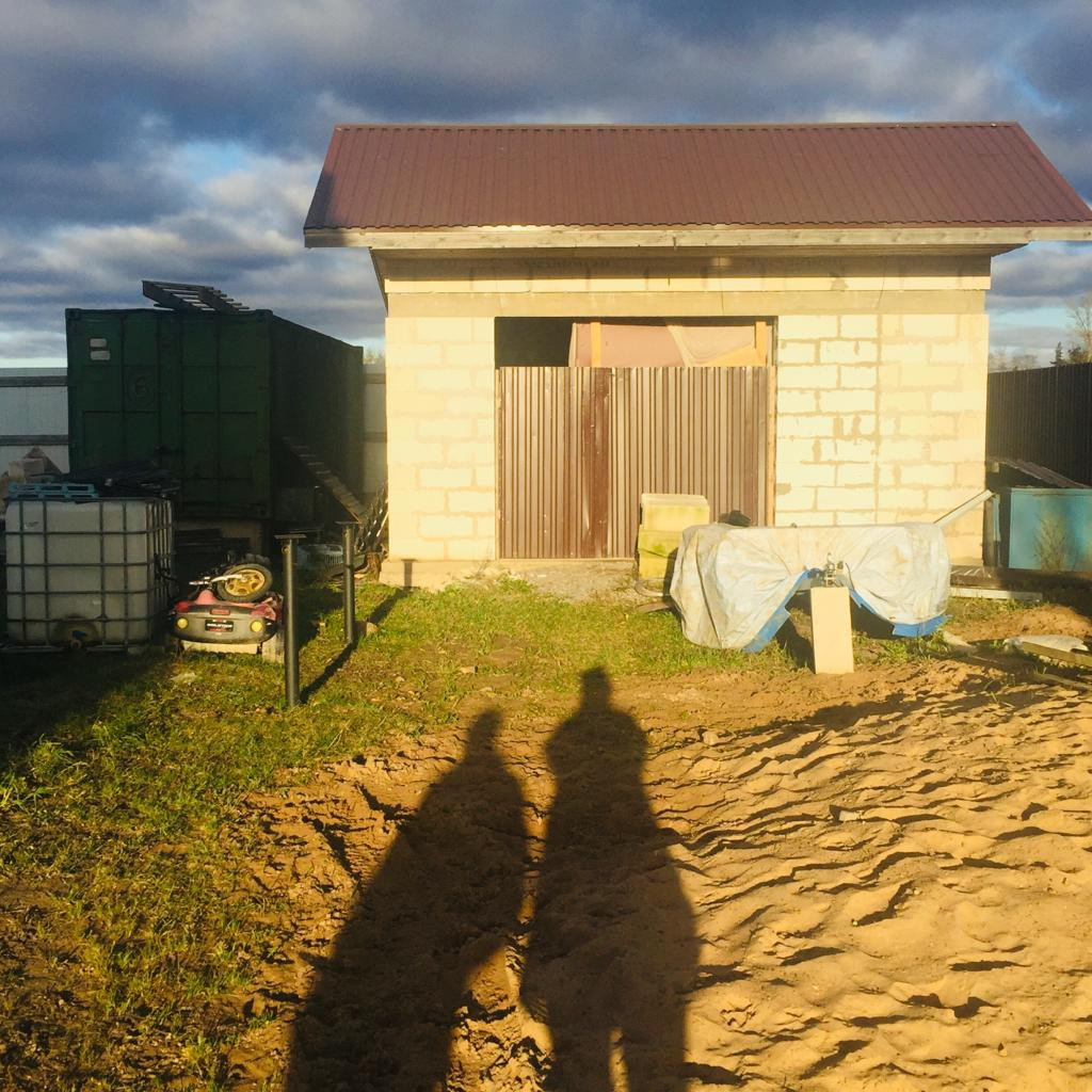 Гараж: 6*6 фундамент плита, монолитные блоки, утеплен, вынесены стойки для навеса,
