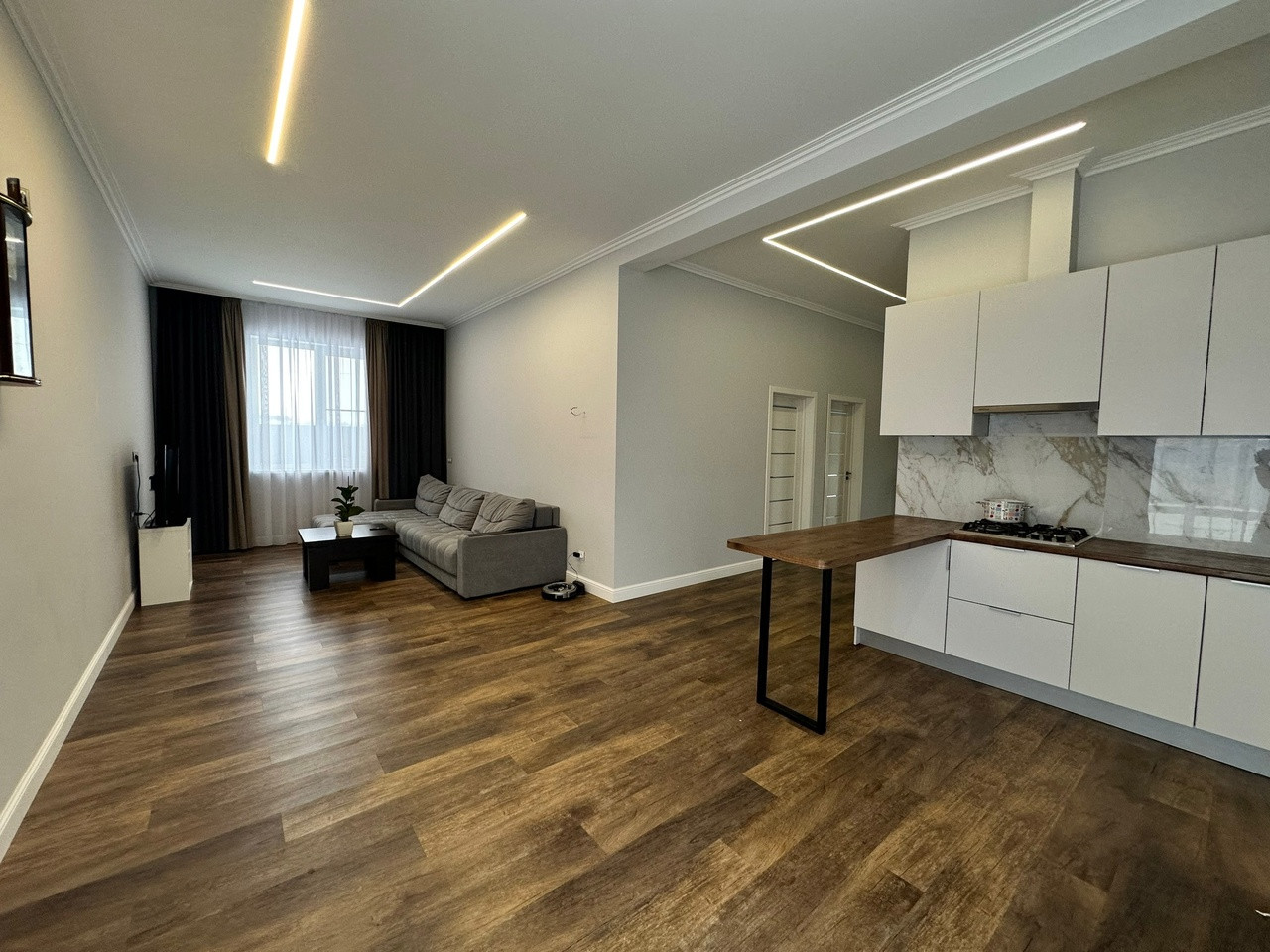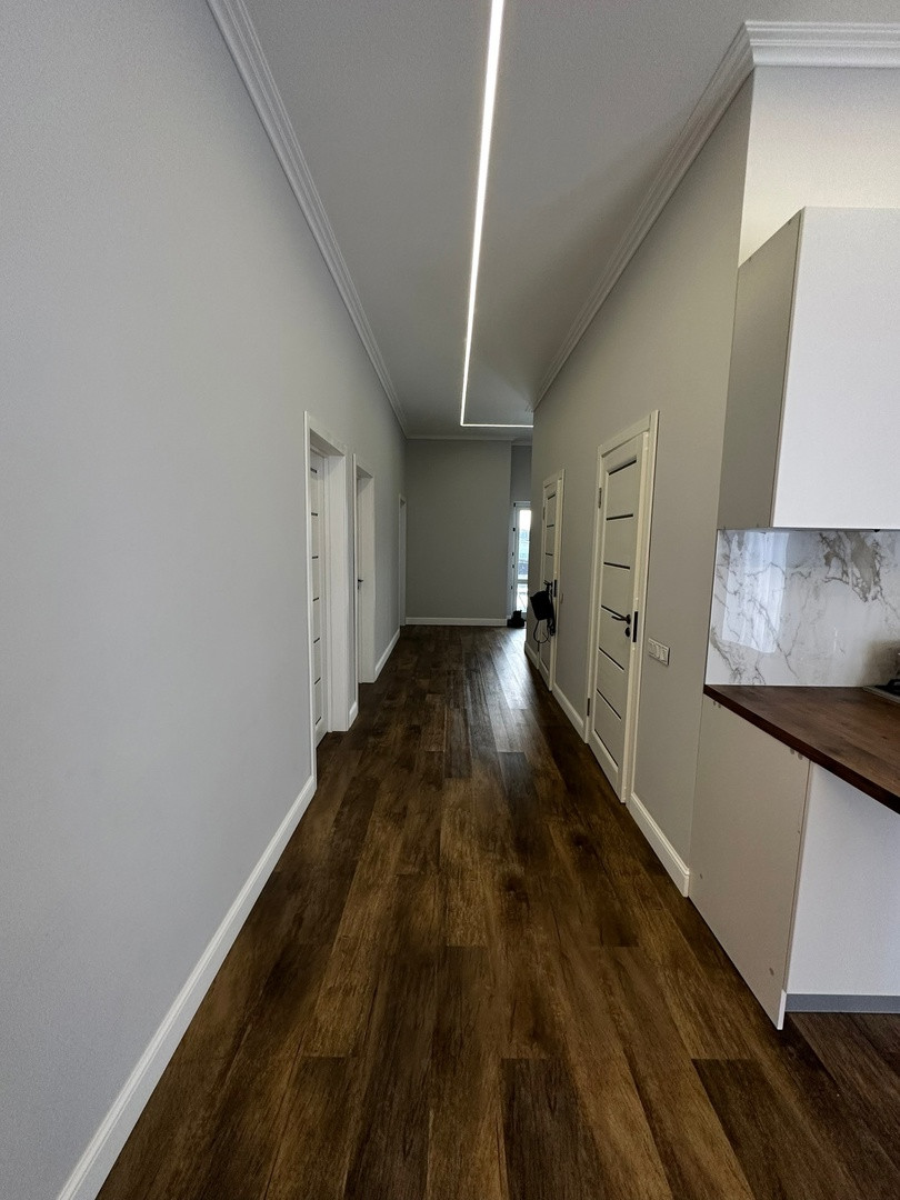 Большое количество света за счет панорамного остекления. Выполнена качественная отделка из материалов европейских производителей: