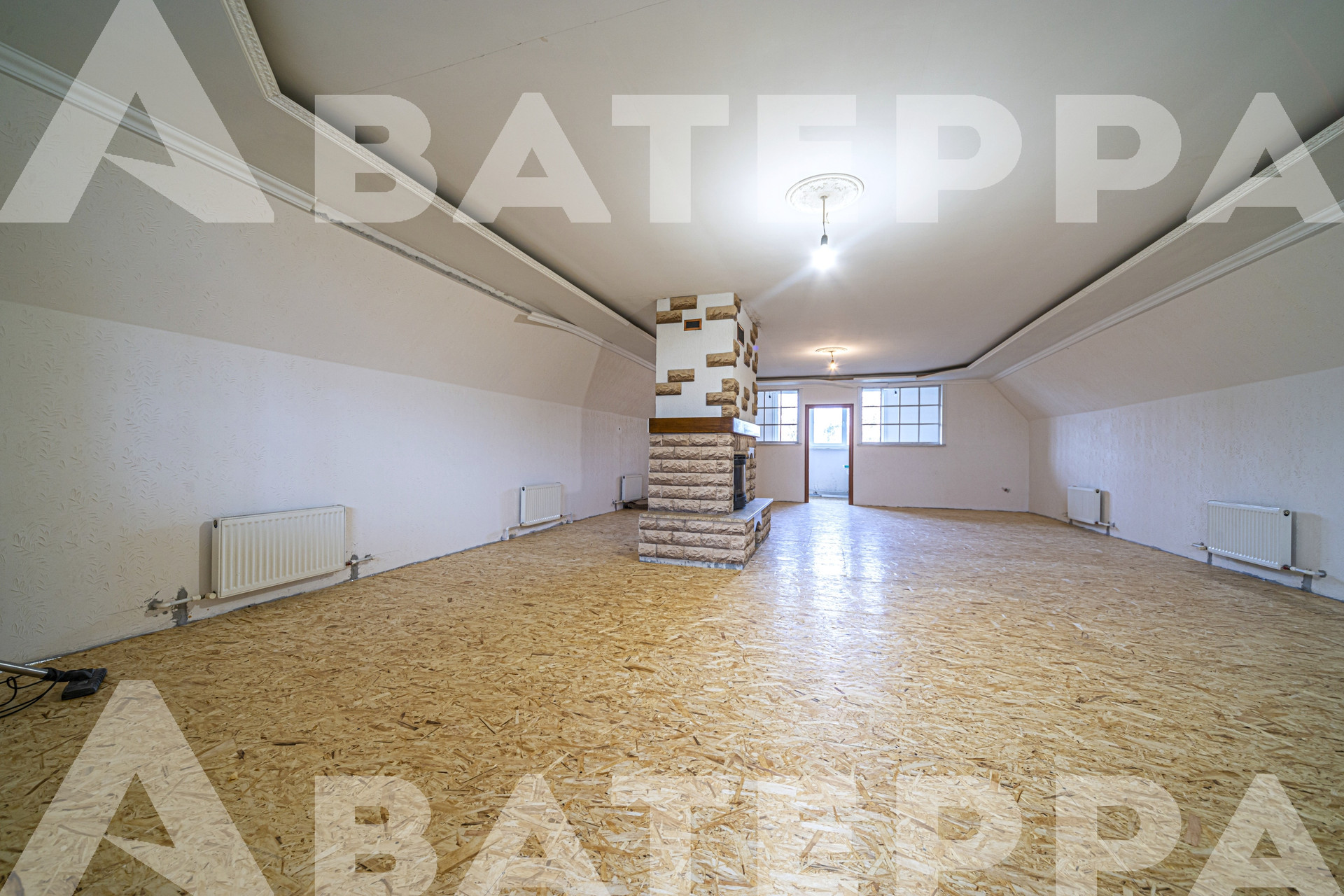 3 этаж - мансардный: свободная планировка с настоящим камином.