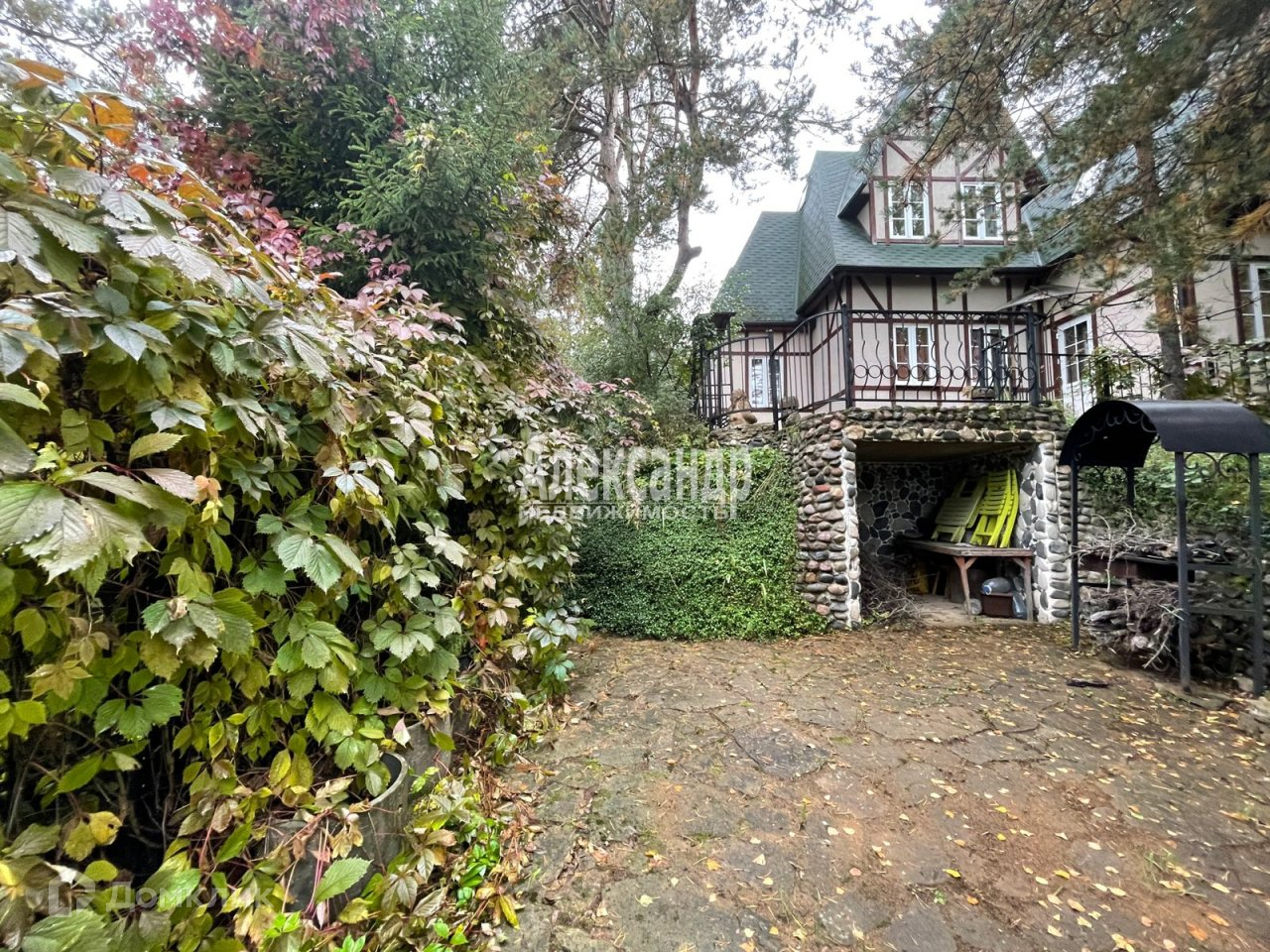 Участок 16 соток, с элементами ландшафтного дизайна, скрыт от посторонних глаз буйной растительностью и особенностями рельефа. В нижней части участка расположены подземный гараж (монолитный железобетон) с площадкой для парковки, небольшой гостевой дом с камином. Чуть выше- русская баня, домик для велосипедов и дачной утвари. В верхней части участка, рядом с домом крытая парковка на 2 а/м. На участке много сосен, елей и берез. Плодоносящий сад-яблони, сливы. Участок зонирован естественными особенностями рельефа. На образованных террасах находятся зона барбекю, большой грот, площадки для игр и отдыха, подготовлено место для уличного бассейна.