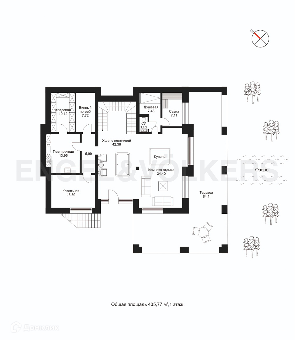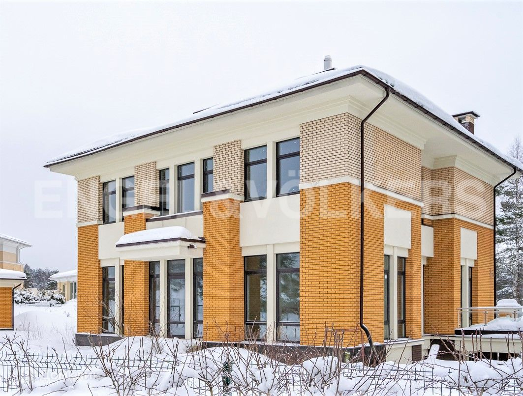 Резиденция построена по индивидуальному проекту и гармонично вписана в ландшафт участка, открывая исключительные виды на кроны сосен и водную гладь озера Вероярви. Конструктив дома отличает состав экологичных, проверенных и долговечных материалов – монолитная плита фундамента и перекрытий, кирпичный каркас с облицовочным кирпичом.