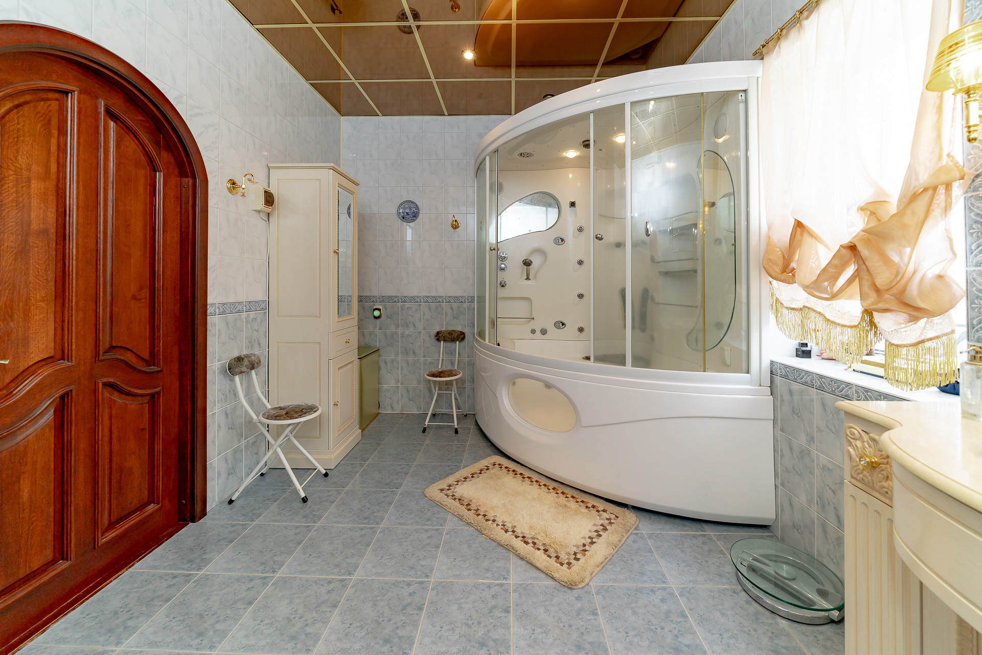 На территории имеется крытый, всесезонный бассейн с подогревом, подсветкой и гидромассажем. В летнее время крыша бассейна сдвигается и появляется открытое пространство. Можно принимать солнечные ванны.