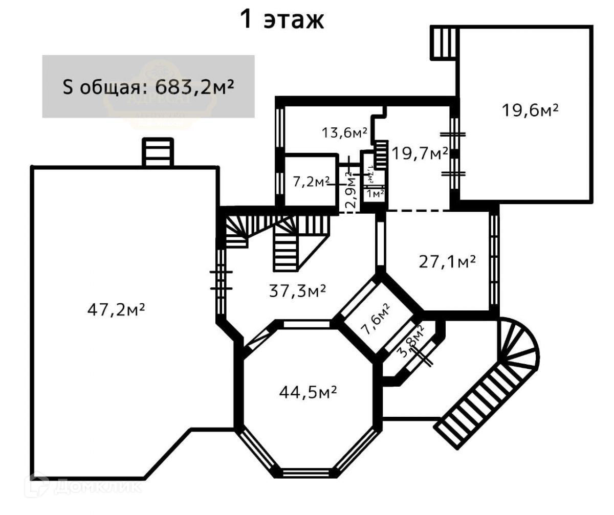 Цокольный этаж - 466 кв. м., гараж 57,6 кв. м., котельная, кладовая, зал 96,8 кв. м., гостиная 56,9 кв. м., спортзал 127 кв. м.